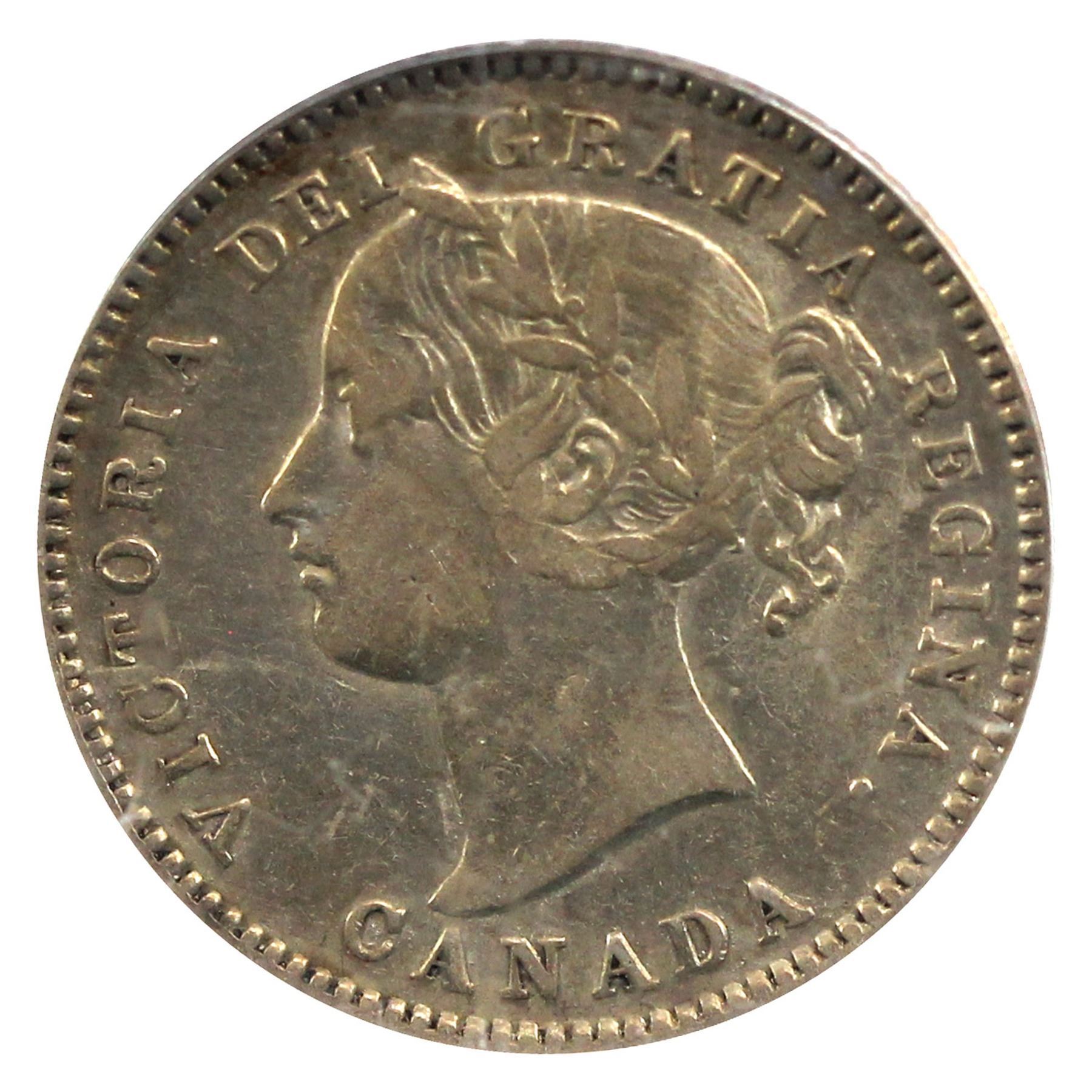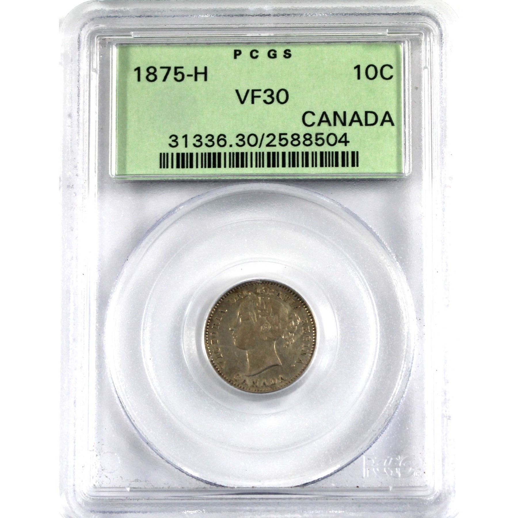 10-cent 1875H PCGS Certified VF-30. In old green label holder. A Nice mid grade example of this key date Victorian issue!
