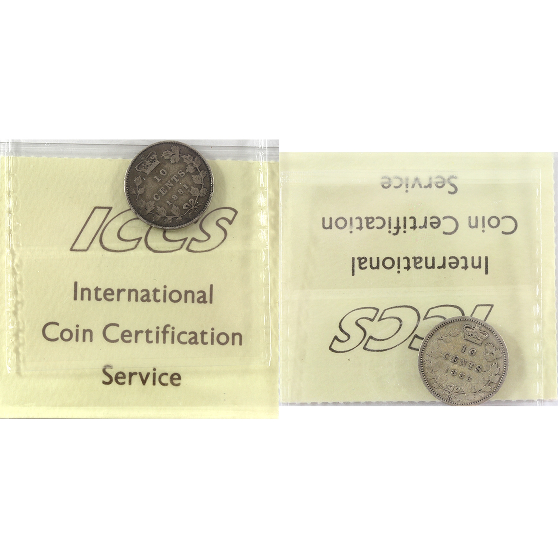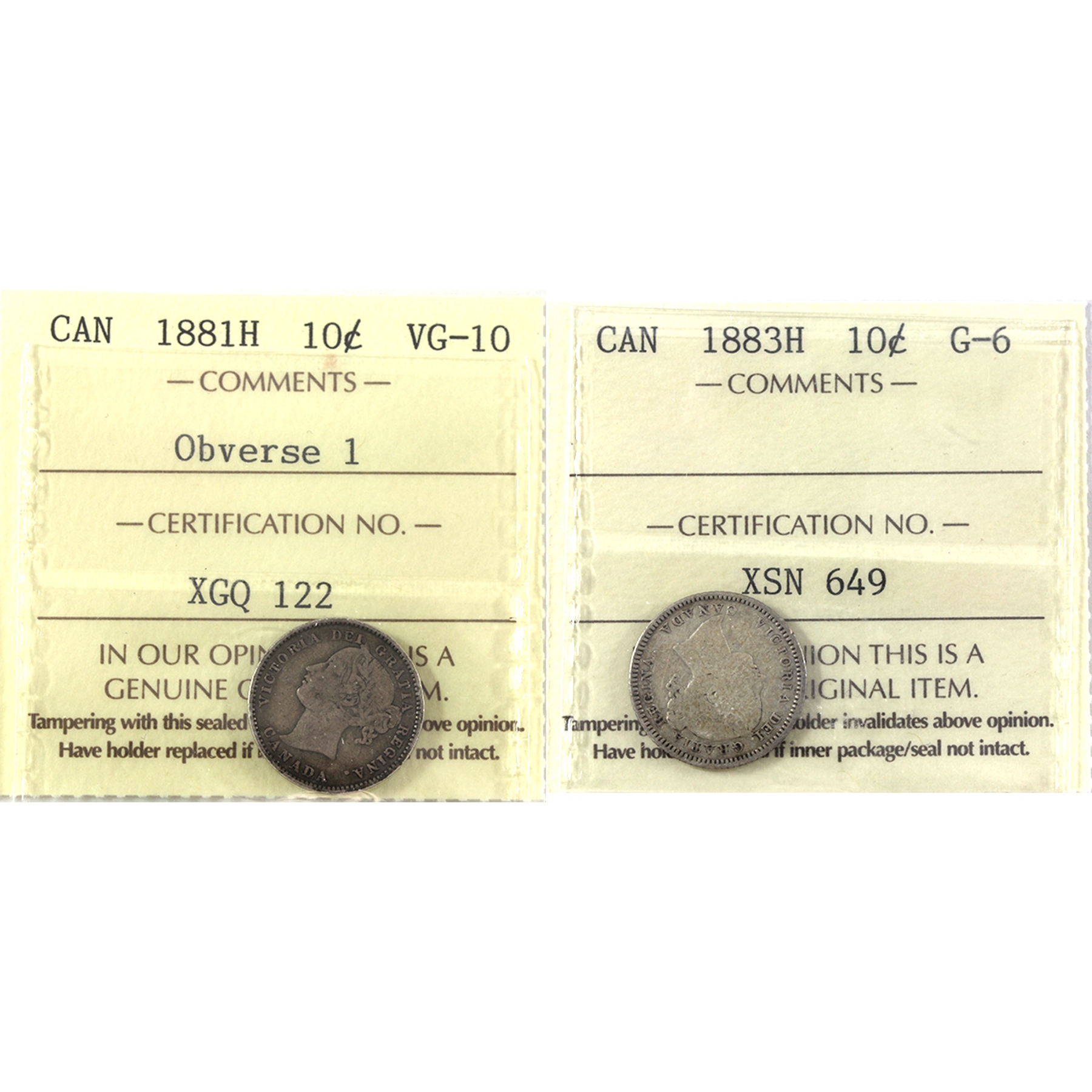 10-cent 1881H Obverse 1 VG10 & 1883H G6 ICCS. 2pcs.