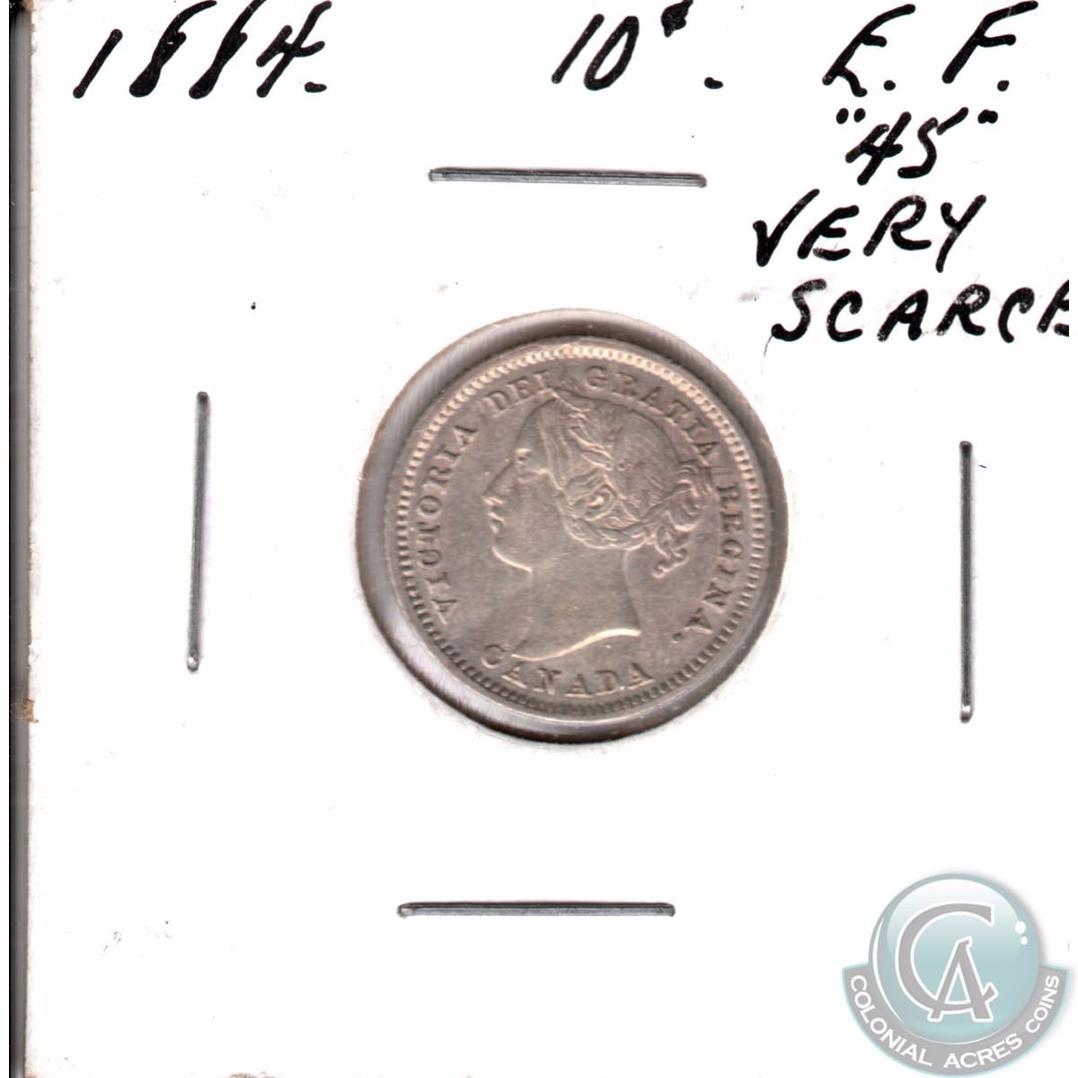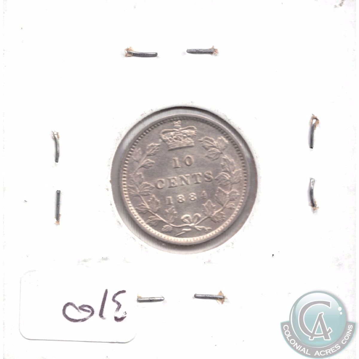 10-cent 1884 EF-45. Traces of Mint lustre still present in this coin originally graded by Bob Armstrong. Scarce date!