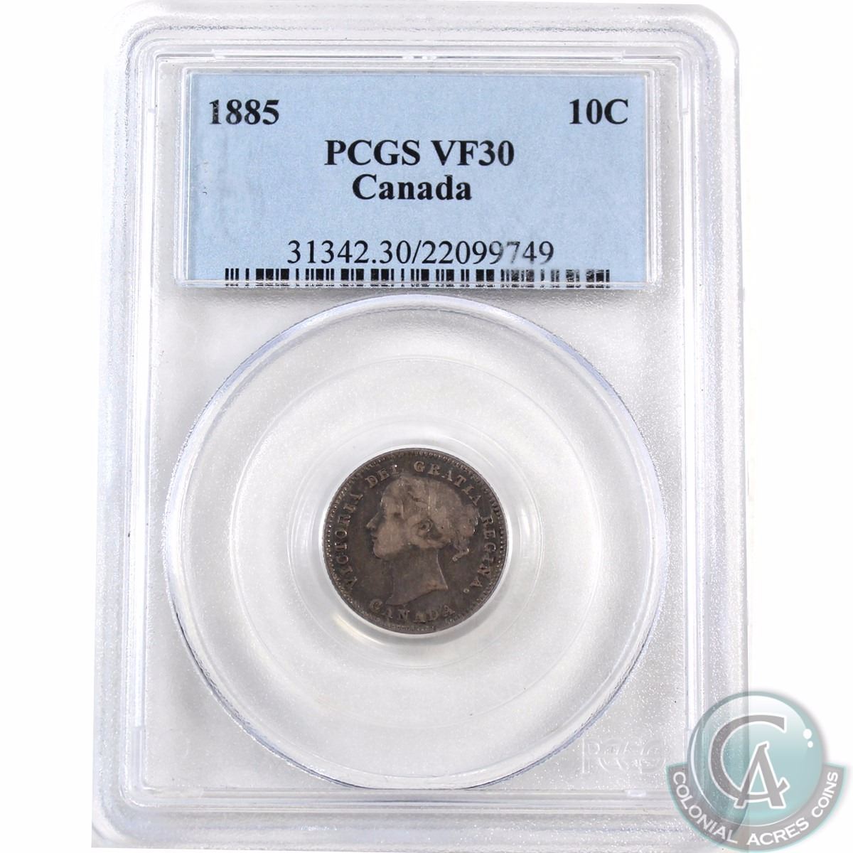 10-cent 1885 PCGS Certified VF-30