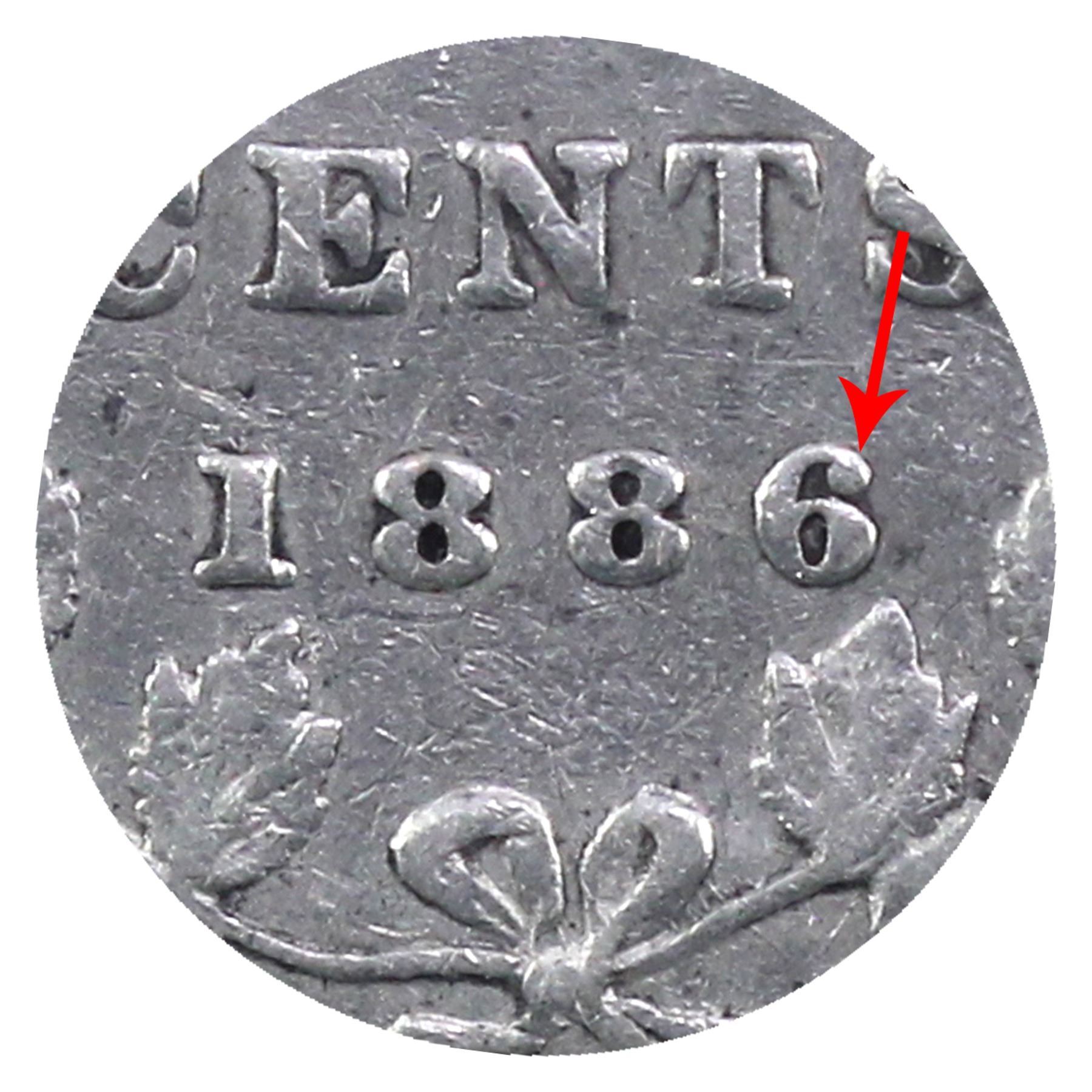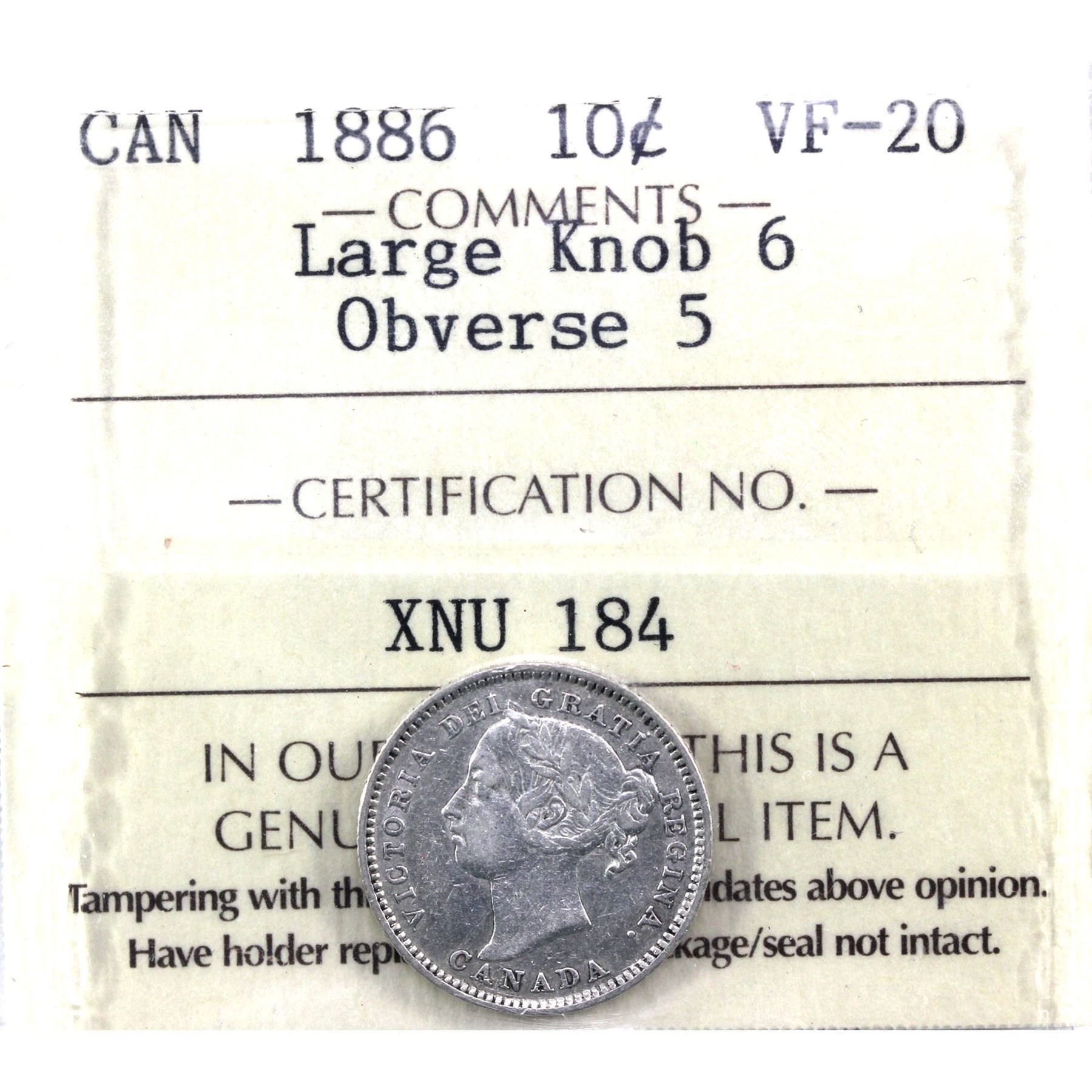 10-cent 1886 Large Knob 6, Obverse 5 ICCS Certified VF-20.