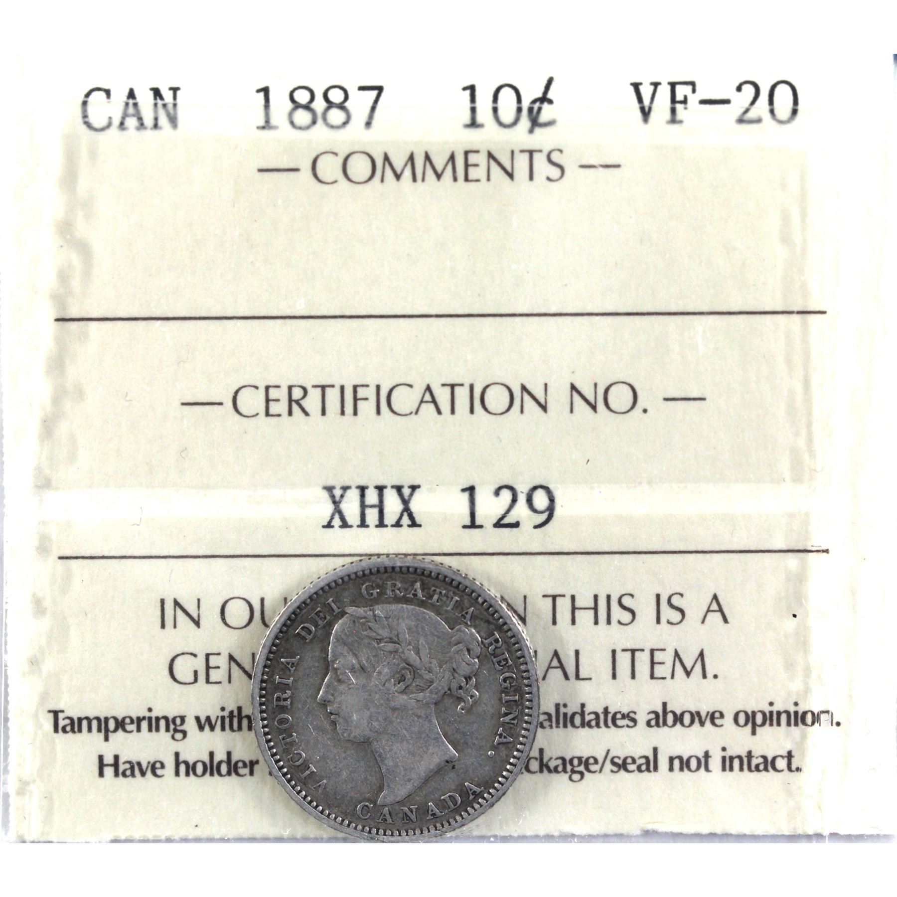10-cent 1887 ICCS Certified VF-20. *Key Date*