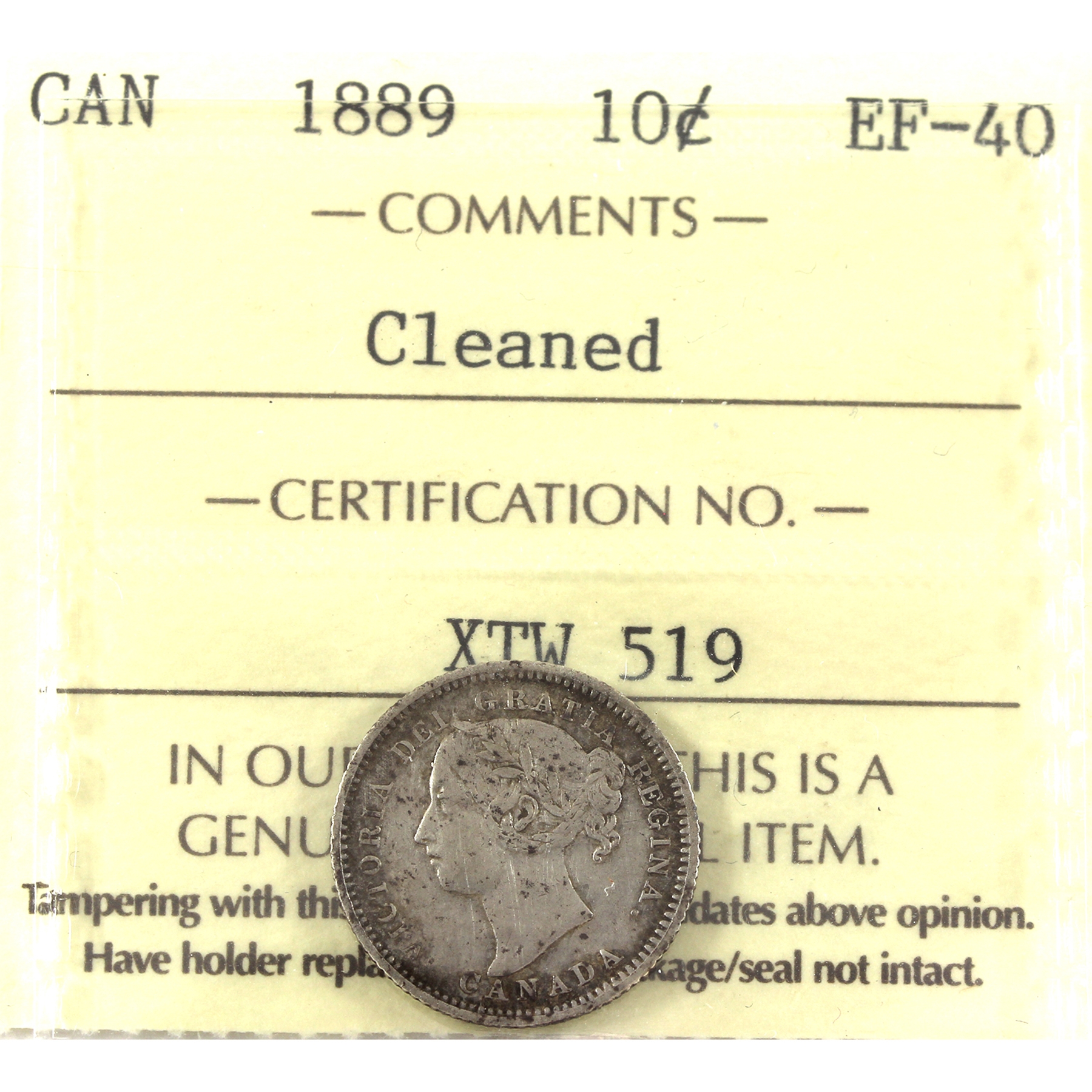 10-cent 1889 ICCS EF40