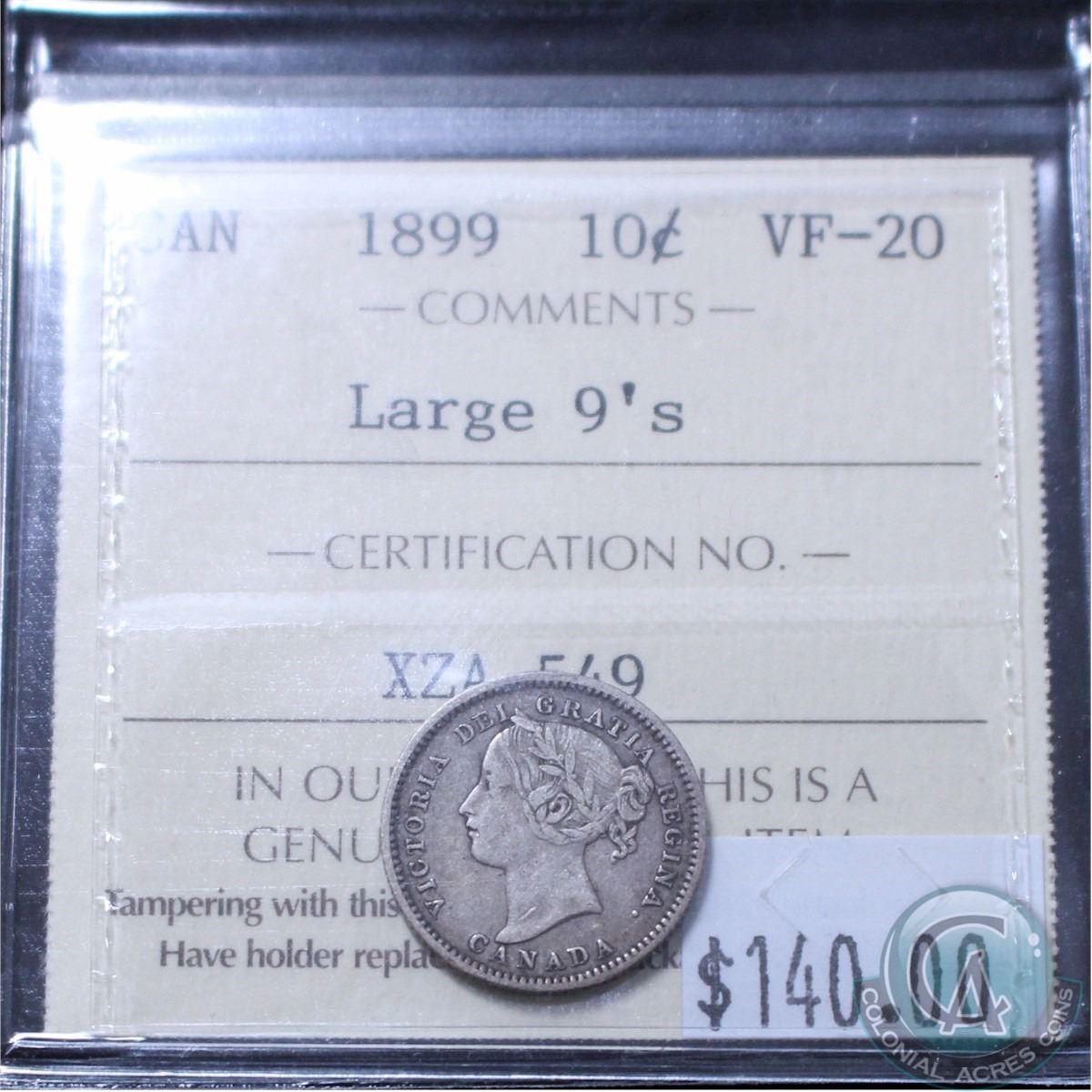 10-cent 1899 Large 9's ICCS Certified VF-20