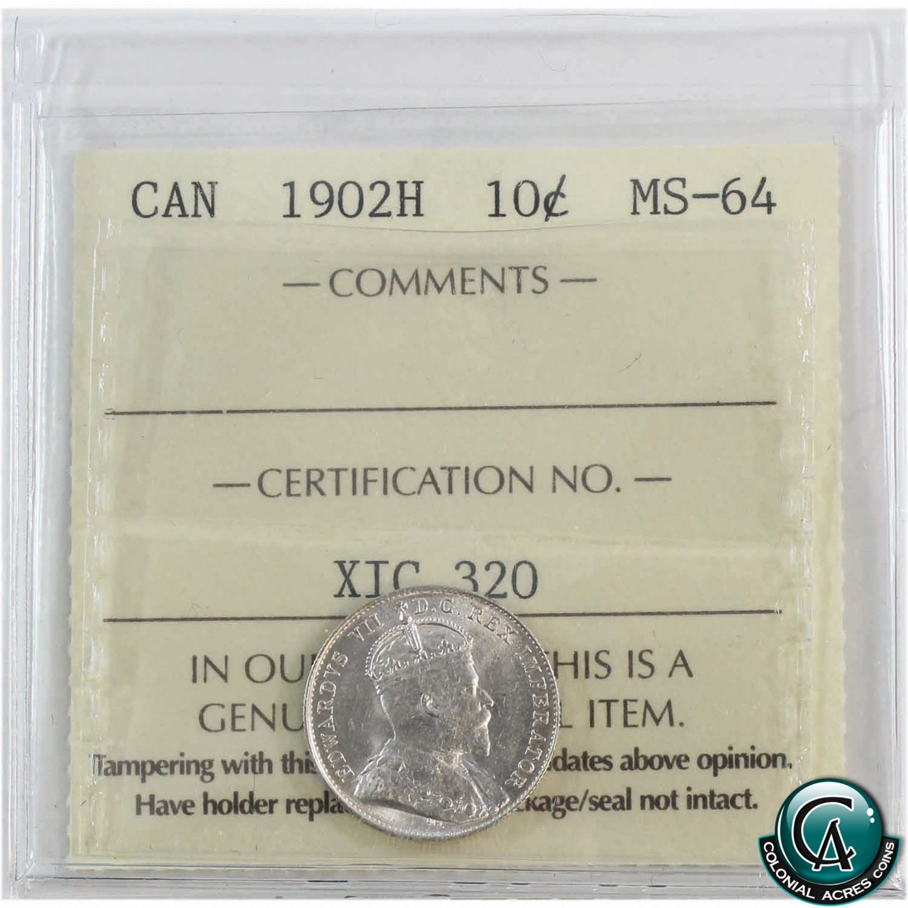 10-cent 1902H ICCS Certified MS-64! Blast white!