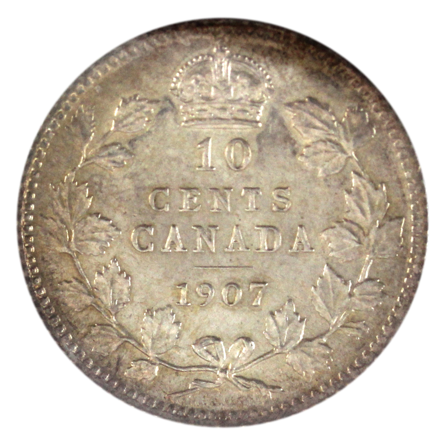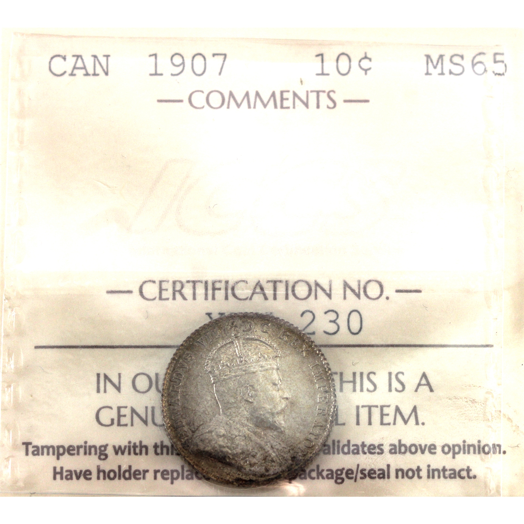 10-cent 1907 ICCS/PCGS MS65. Attractive Caramel Lustre Throughout