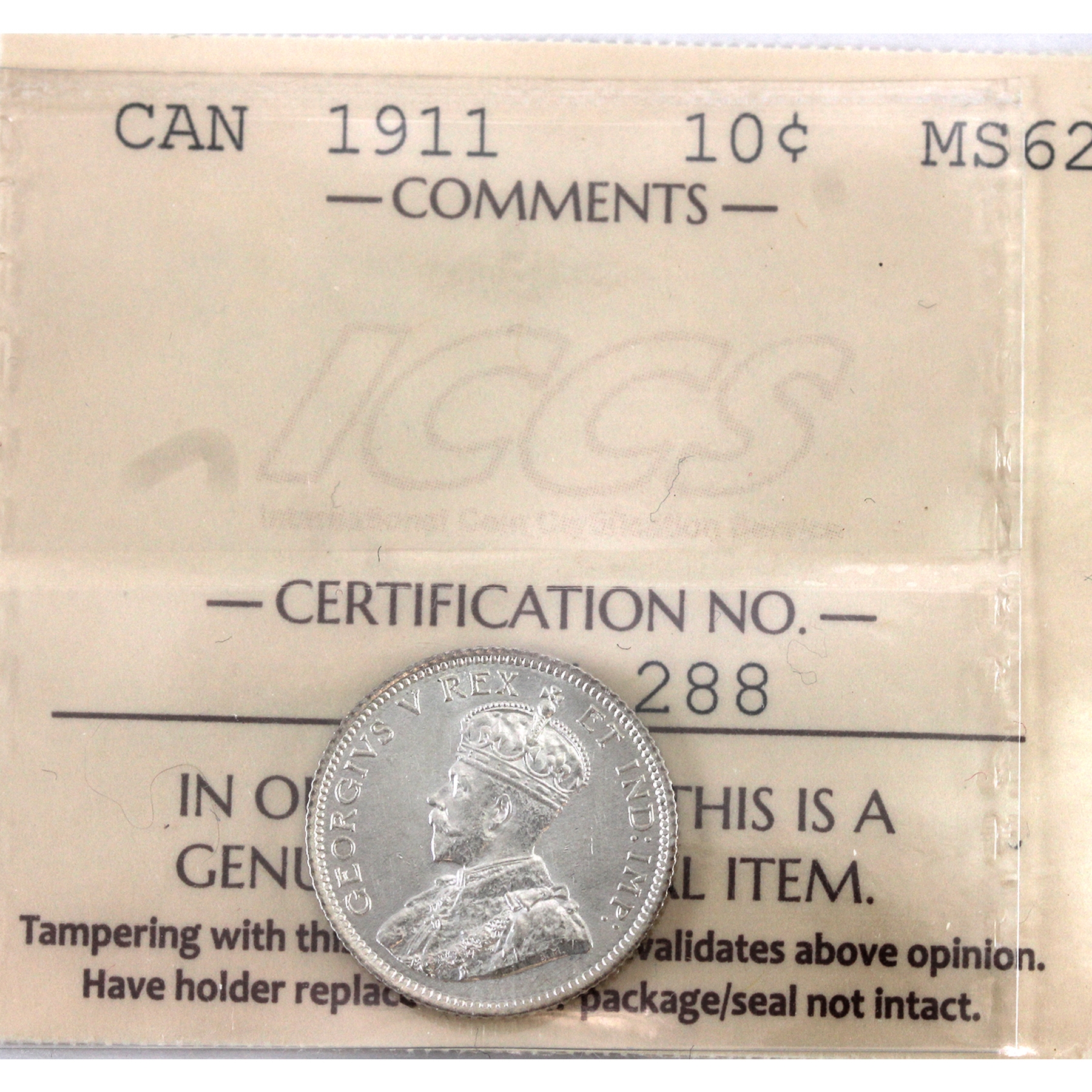 10-cent 1911 ICCS MS62
