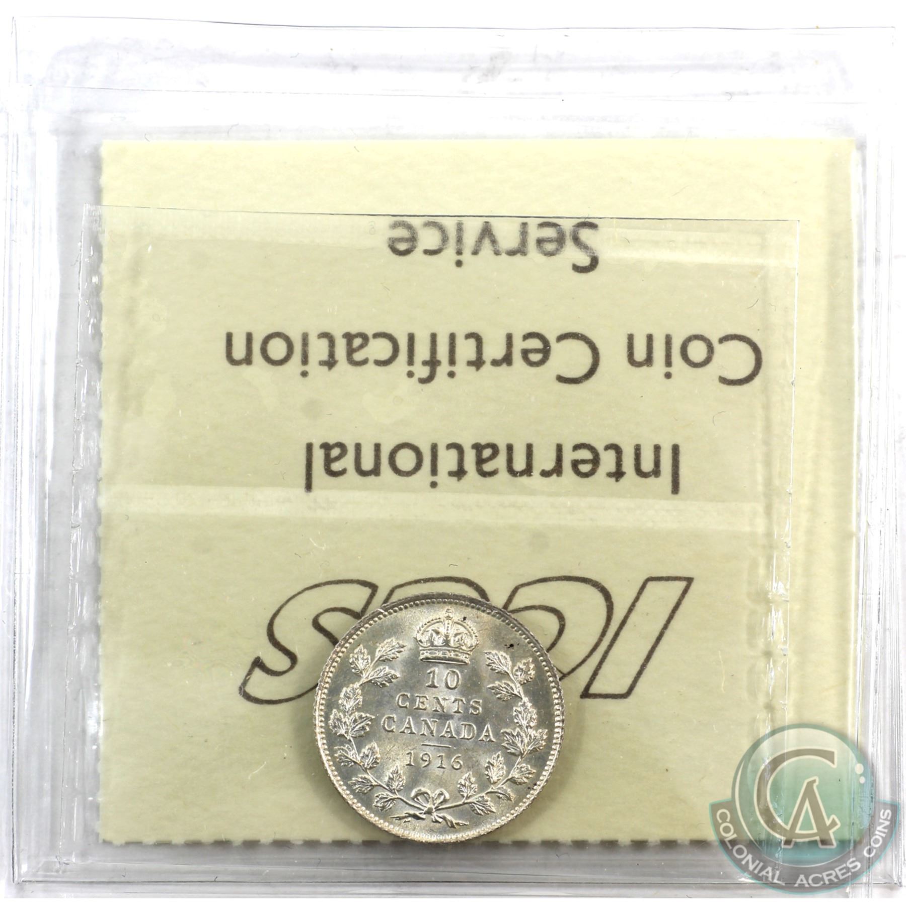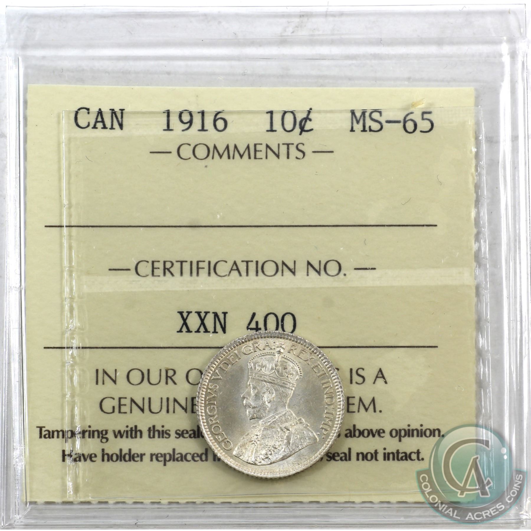 10-cent 1916 ICCS Certified MS-65. A frosted finish coin with subtle hints of golden throughout.