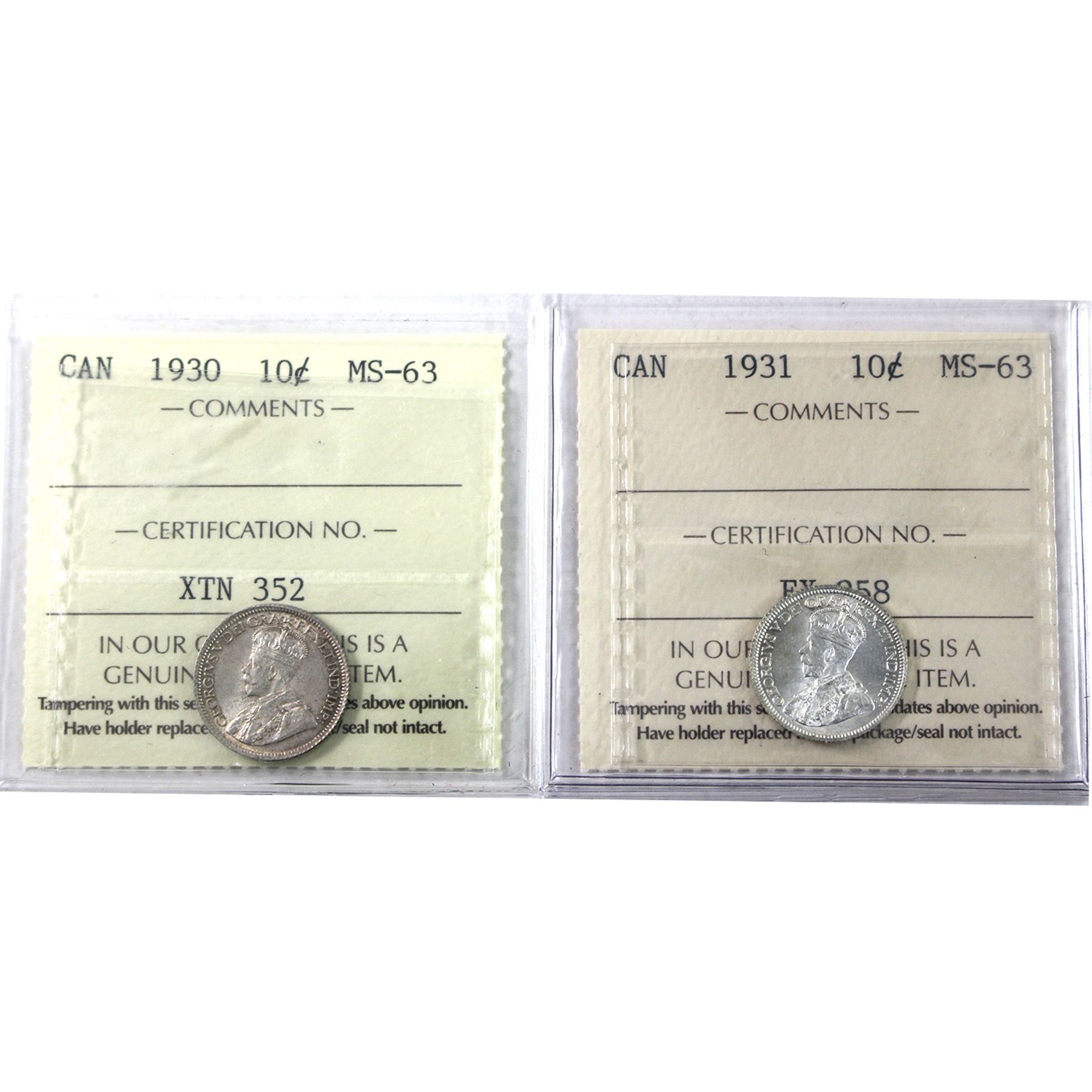 10-cent 1930, 1931 ICCS MS63. 2pcs