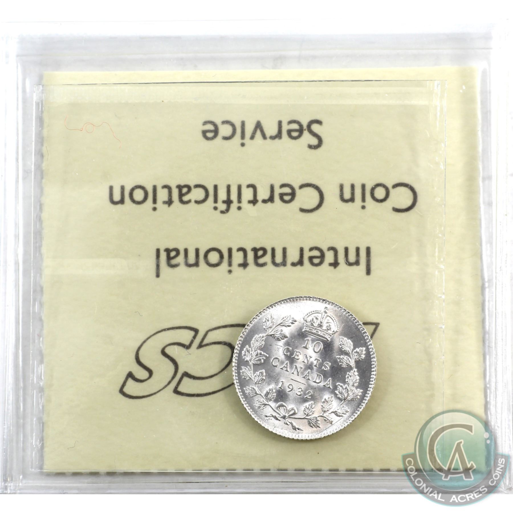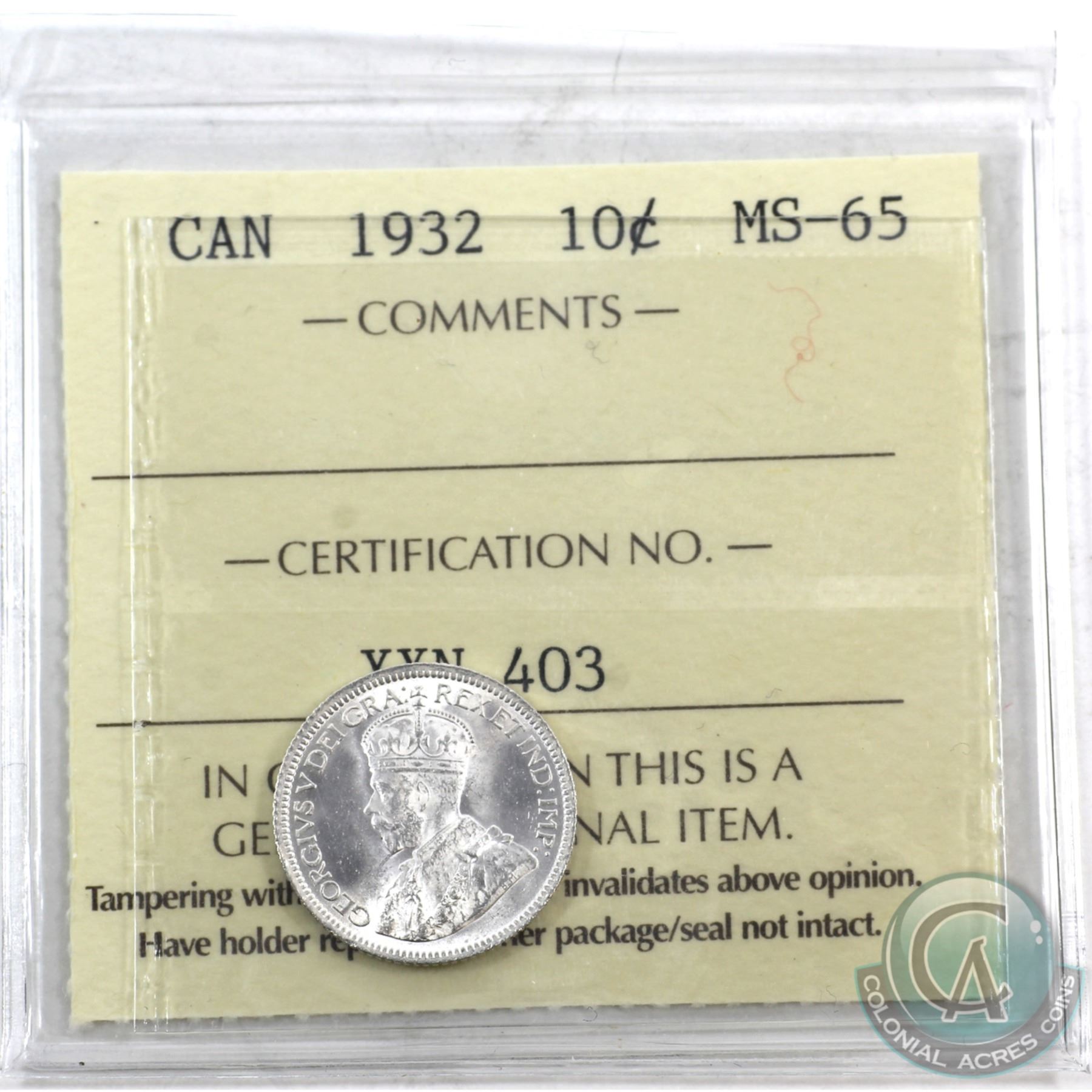 10-cent 1932 ICCS Certified MS-65 Full blast white! Exception eye appeal.