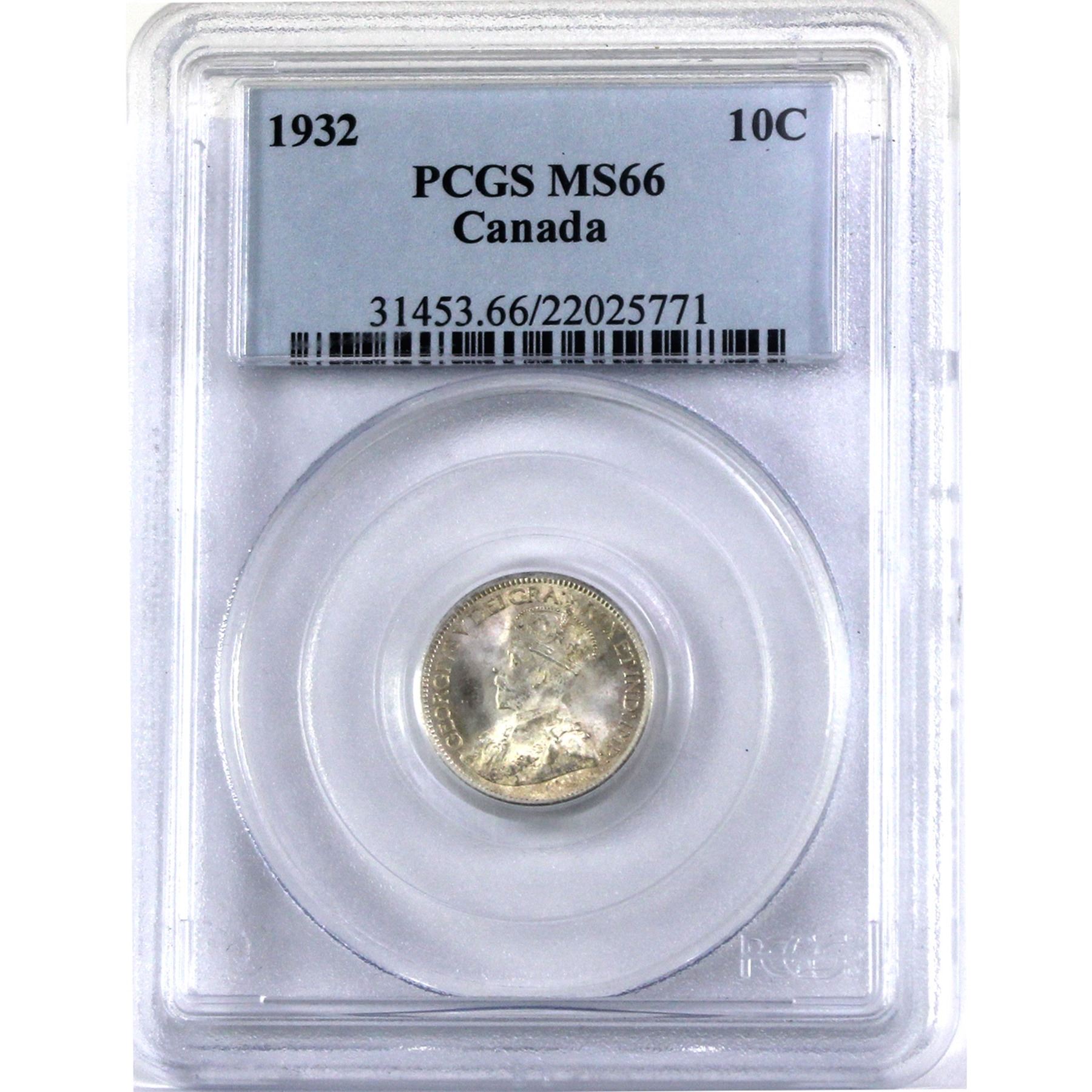 10-cent 1932 PCGS Certified MS66. A Beautiful Example with Warm Gold Hues Throughout & Only 3 Graded Higher by PCGS!