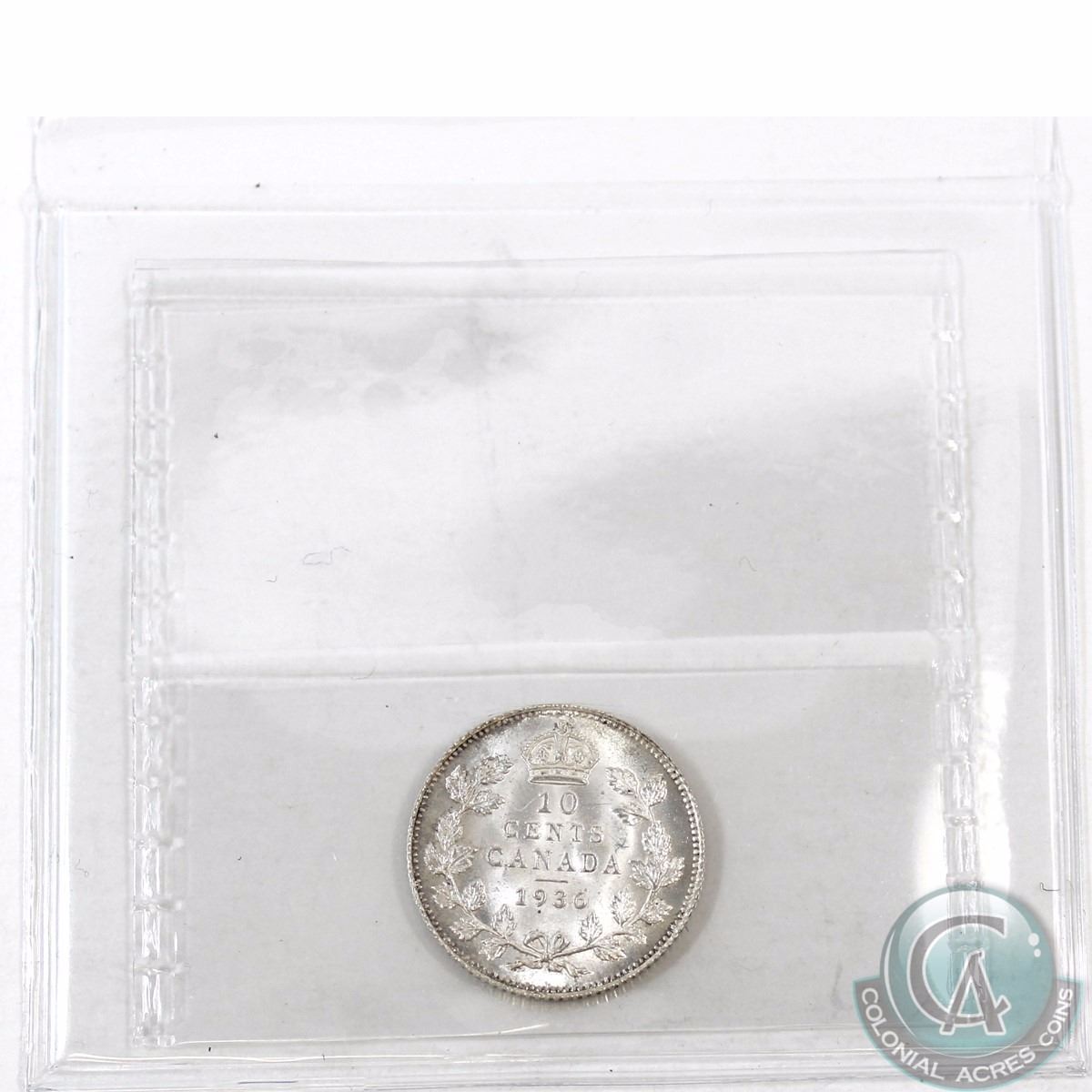 10-cent 1936 ICCS Certified MS-65. A beautiful Frosted Blast White coin with exceptional Eye appeal.