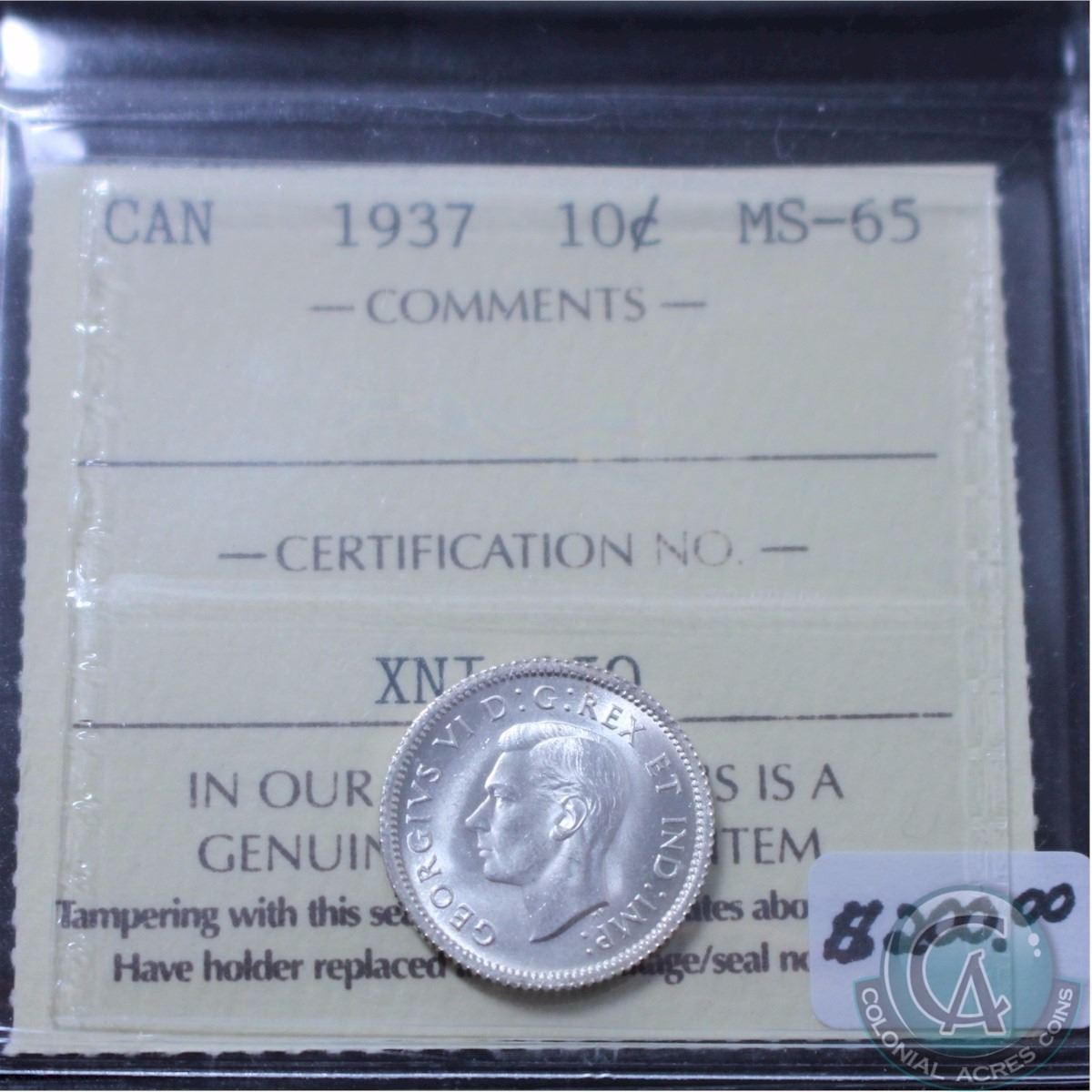 10-cent 1937 ICCS Certified MS-65