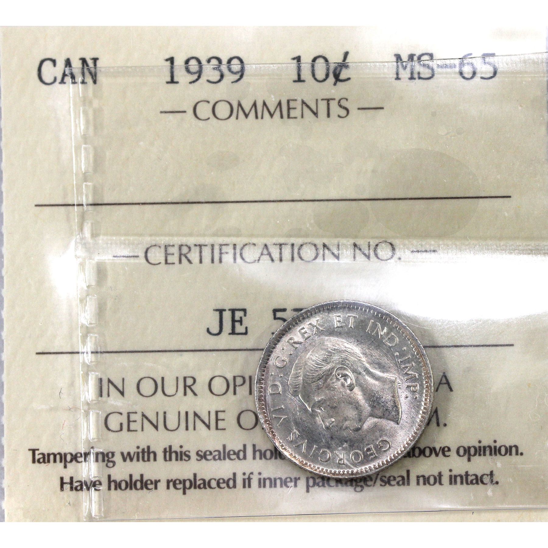 10-cent 1939 ICCS MS65
