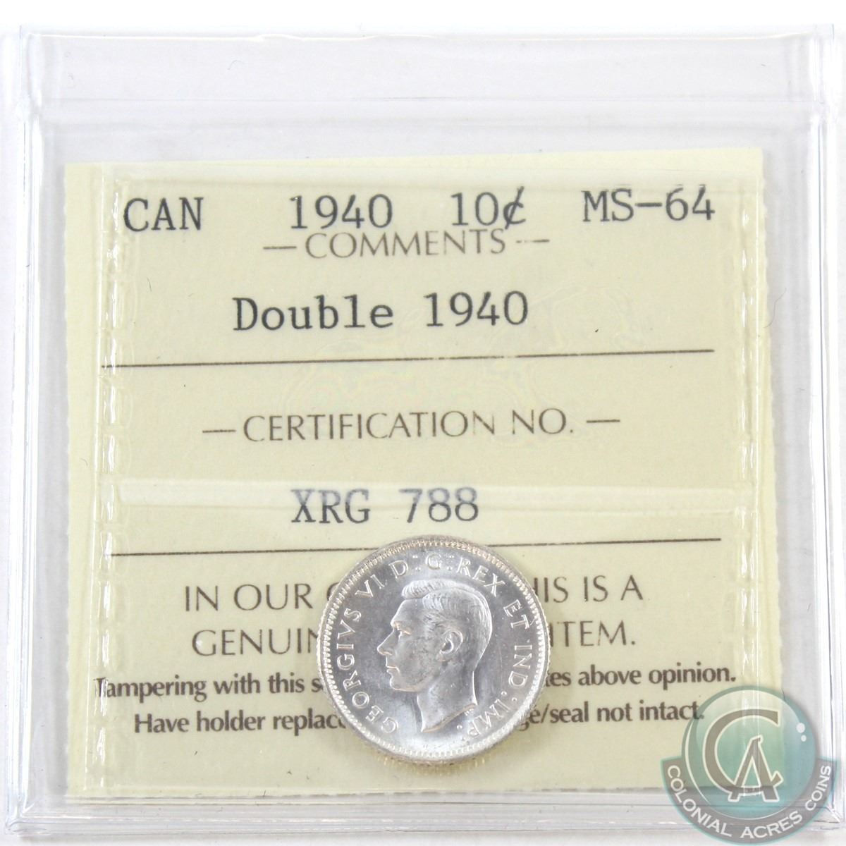 10-cent 1940 'Double 1940' ICCS Certified MS-64