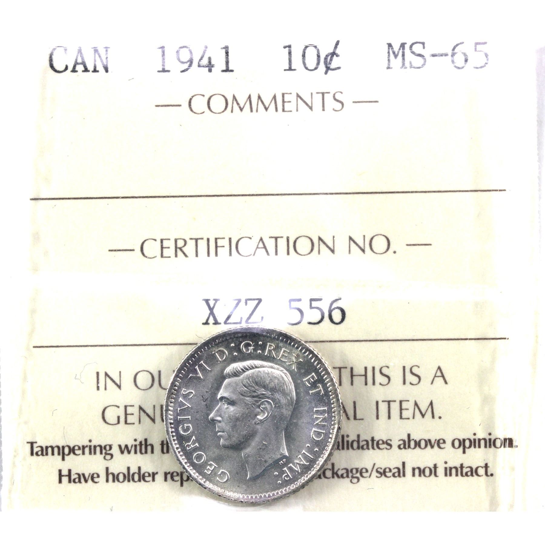 10-cent 1941 ICCS Certified MS-65