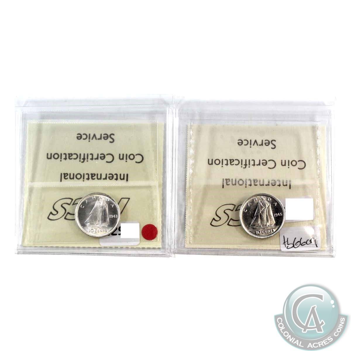 10-cent 1943 & 1945 ICCS Certified MS-65. 2pcs