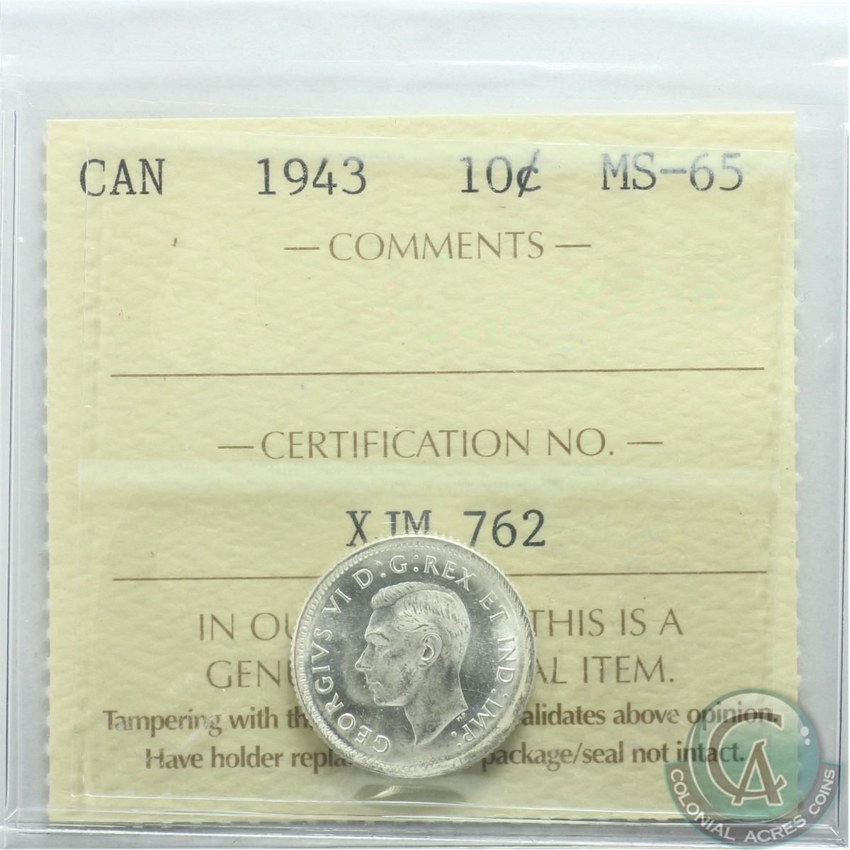 10-cent 1943 ICCS Certified MS-65
