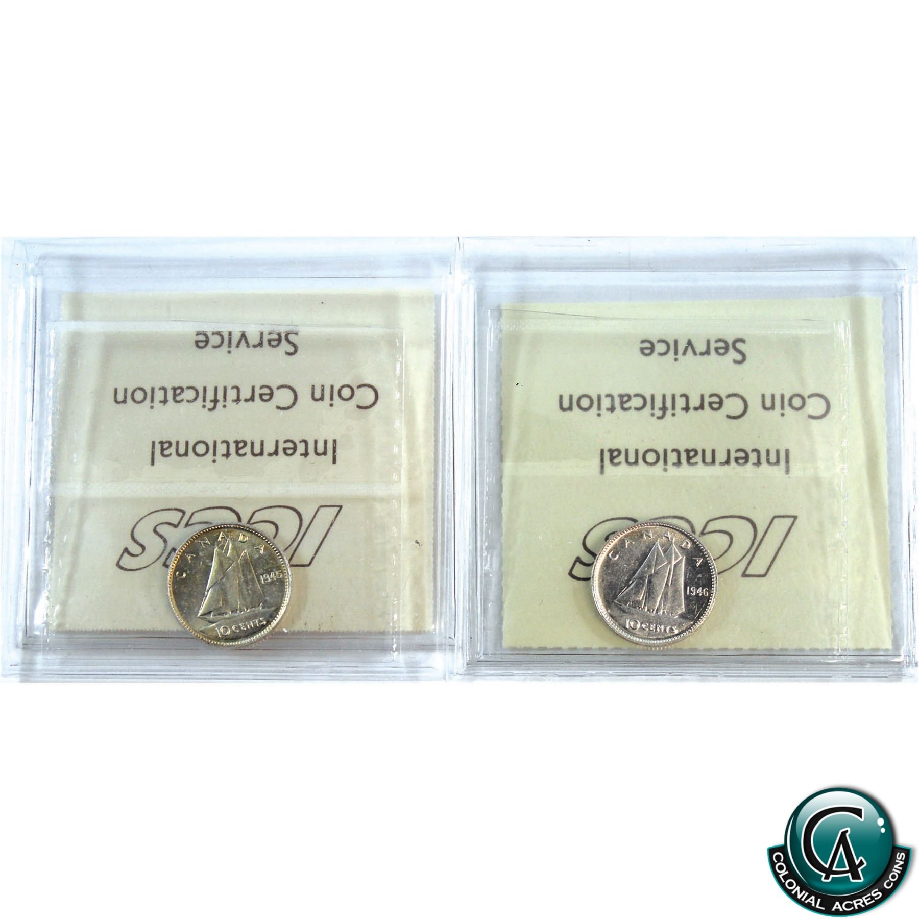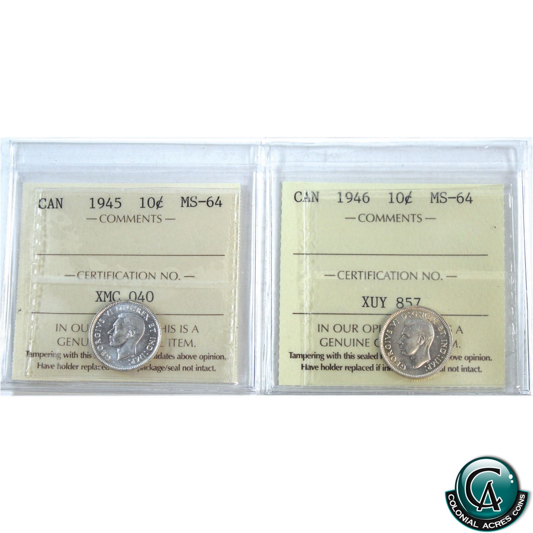 10-cent 1945 & 1946 ICCS Certified MS-64. 2pcs.