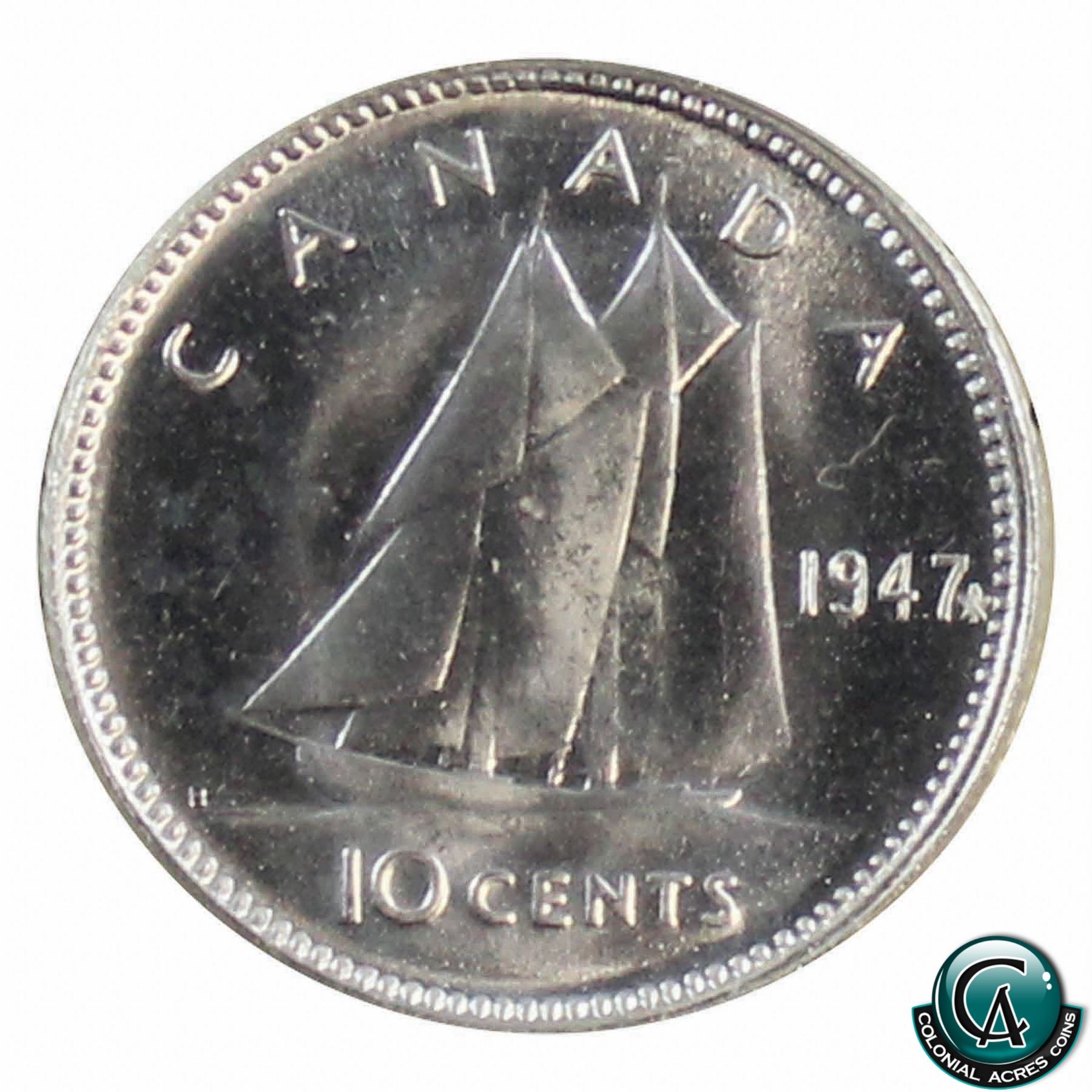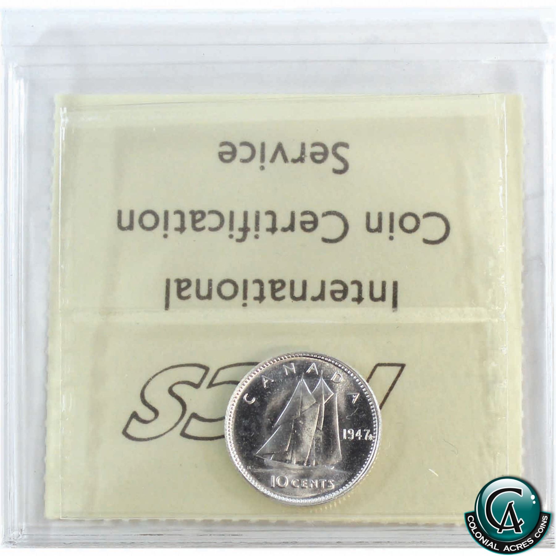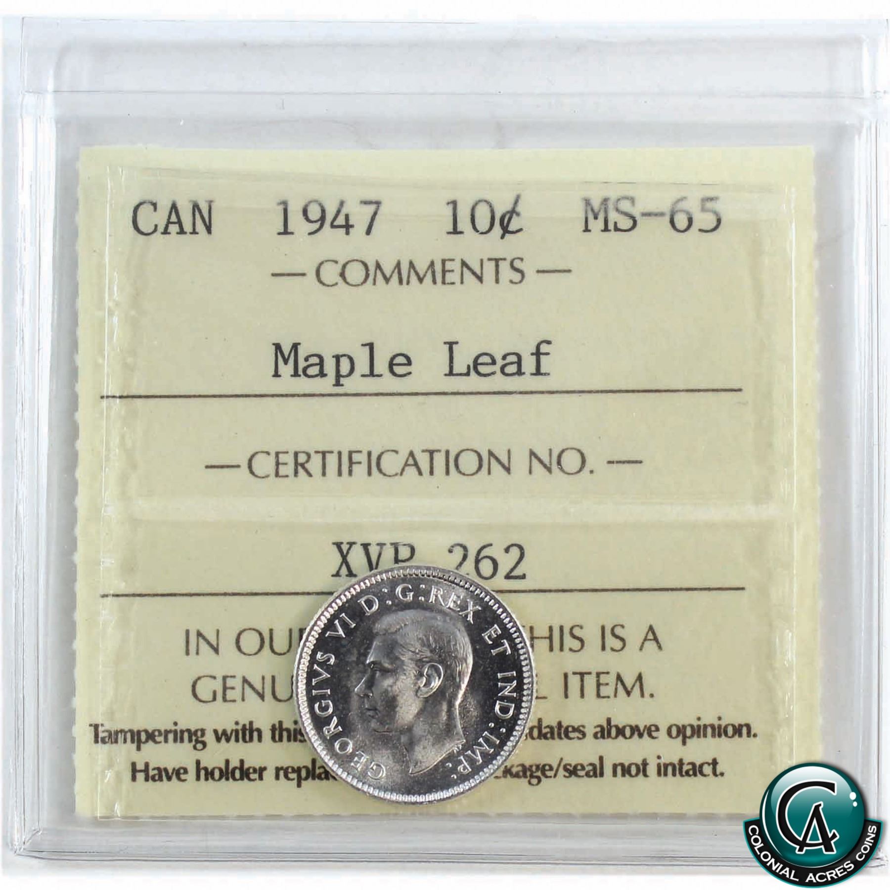 10-cent 1947 Maple Leaf ICCS Certified MS-65.