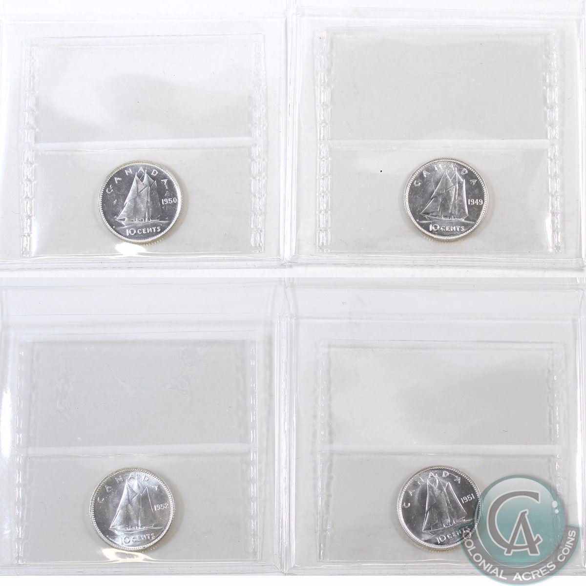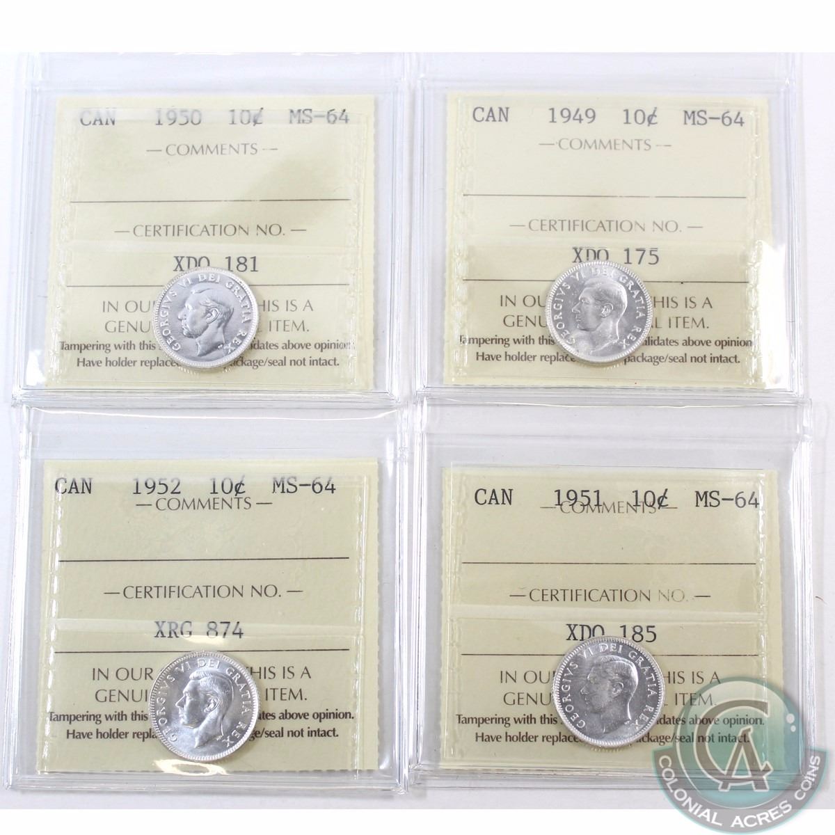 10-cent 1949, 1950, 1951 & 1952 ICCS Certified MS-64. 4pcs