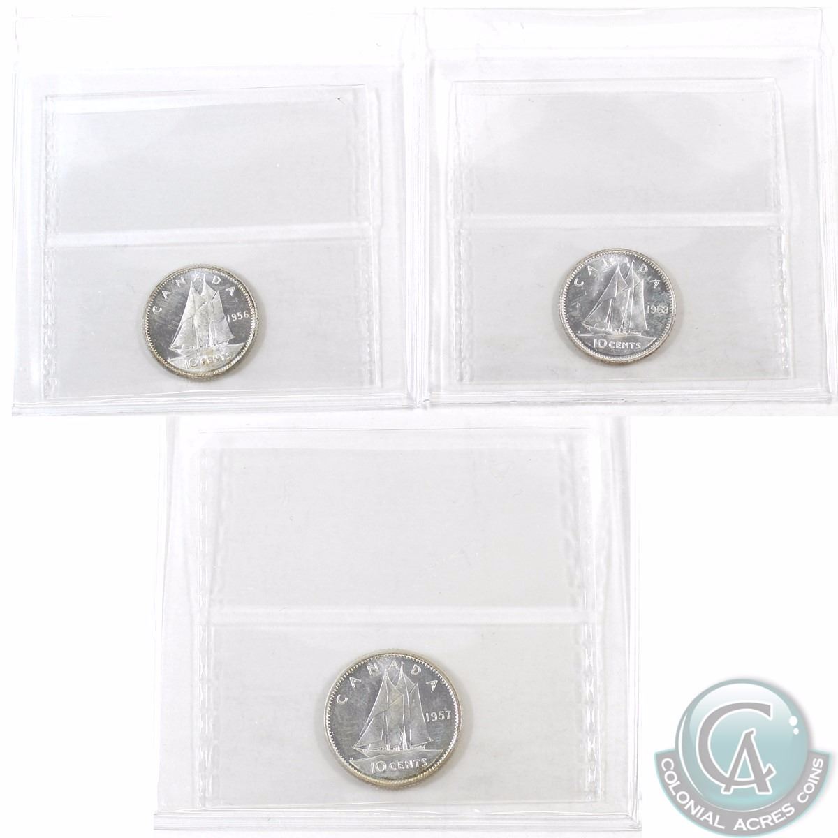 10-cent 1953 NSF, 1956 & 1957 ICCS Certified MS-65. 3pcs