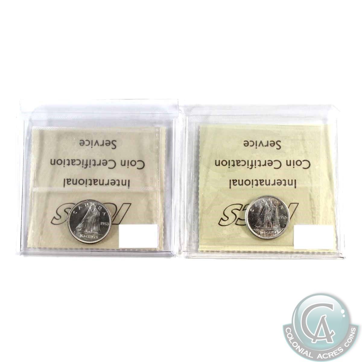 10-cent 1953 SF Cameo & 1956 Dot ICCS Certified MS-65. 2pcs