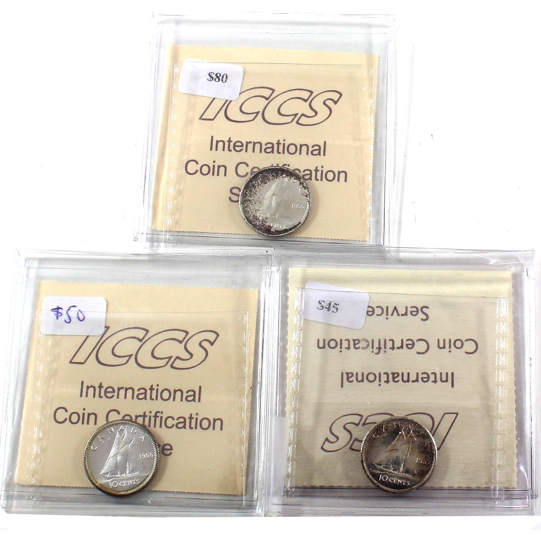 10-cent 1955, 1956, & 1957 ICCS PL65 Cameo. 3pcs.