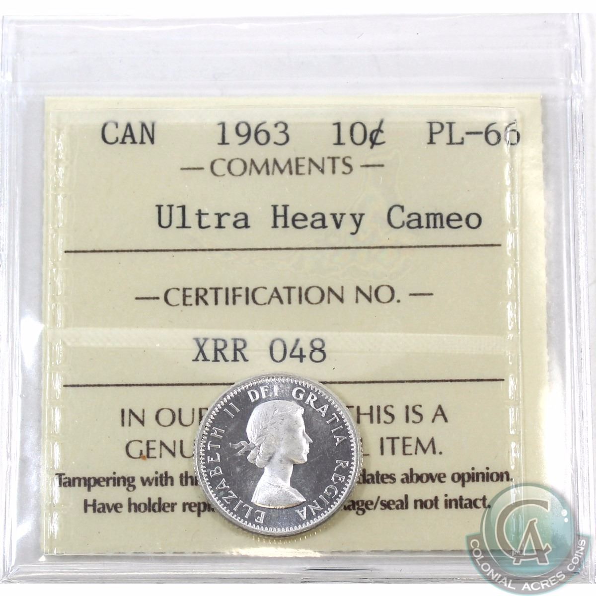 10-cent 1963 ICCS Certified PL-66 Ultra Heavy Cameo. Tied with 4 others for finest known