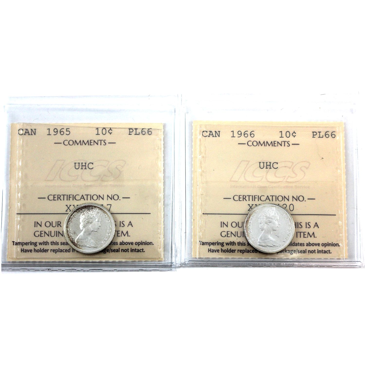 10-cent 1965 & 1966 ICCS PL66 UHC. 2pcs.