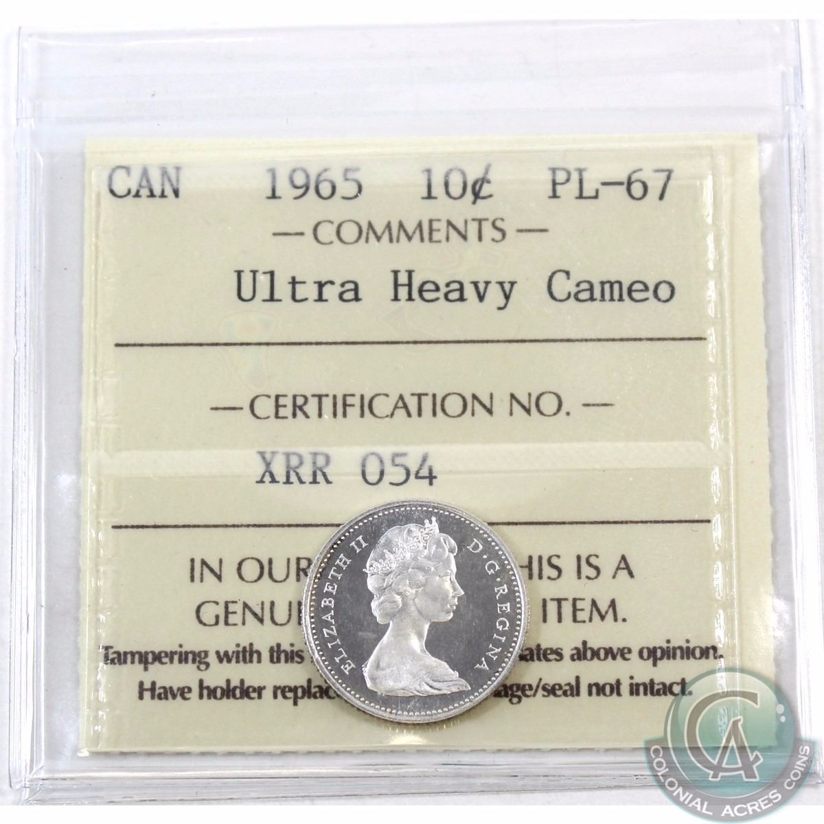 10-cent 1965 ICCS Certified PL-67 Ultra Heavy Cameo. Finest grade known!