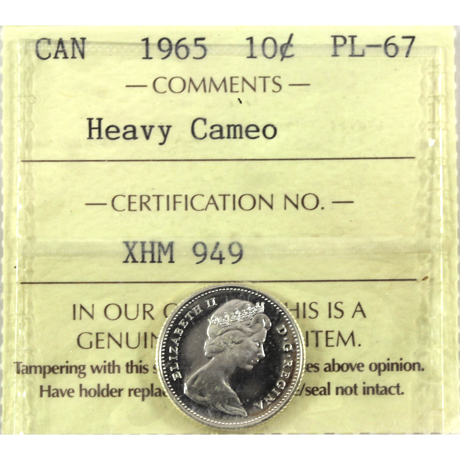 10-cent 1965 ICCS PL67 Heavy Cameo
