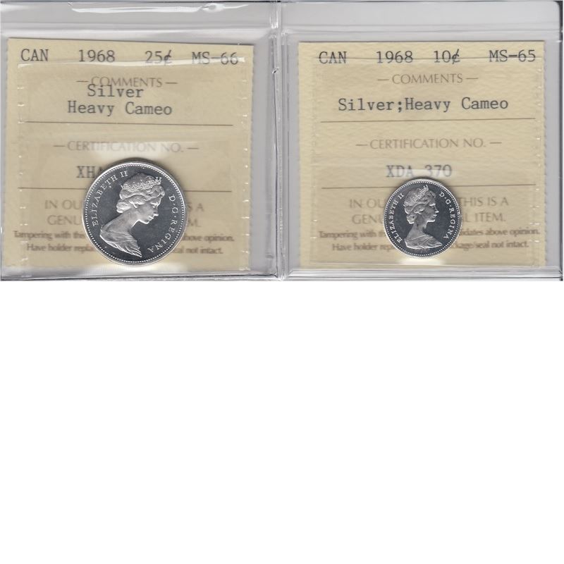 10-cent 1968 Silver ICCS MS65 HC & 25-cent 1968 Silver ICCS MS66 HC. 2pcs