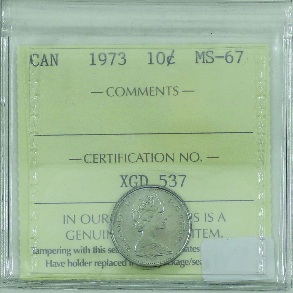 10-cent 1973 ICCS Ccertified MS-67! SOLO Highest Grade by ICCS!