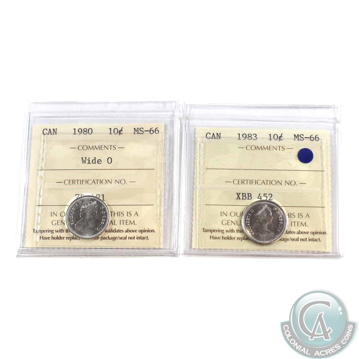 10-cent 1980 Wide 0 & 1983 ICCS Certified MS-66. 2pcs