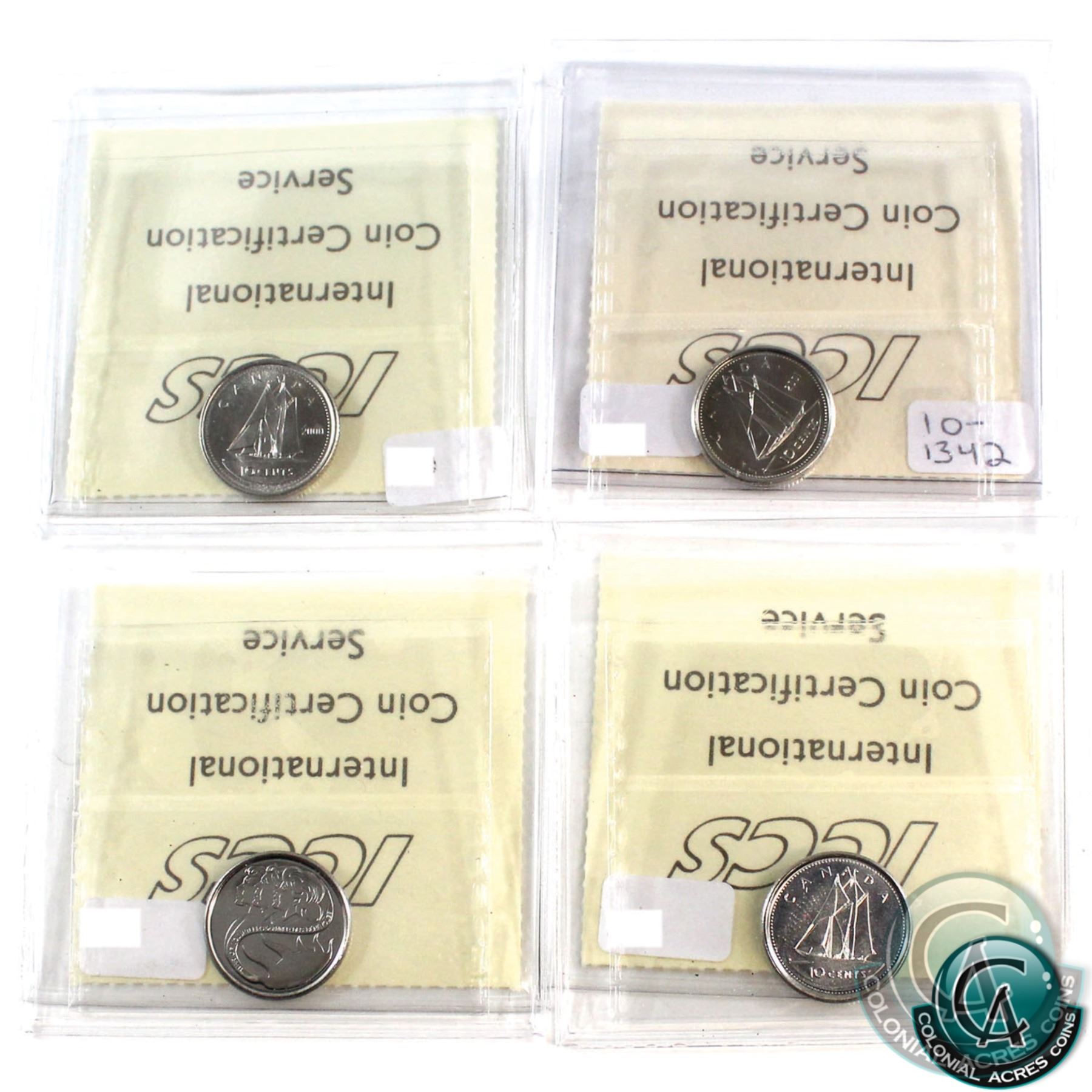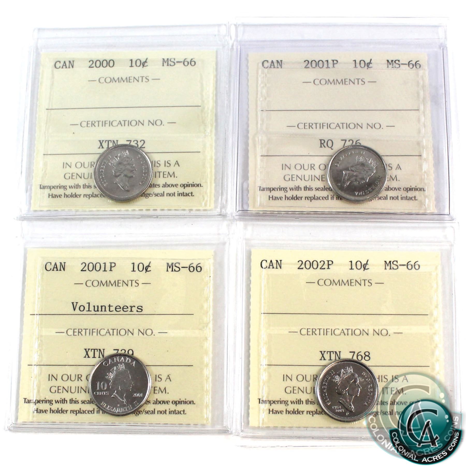 10-cent 2000, 2001P, 2001P Volunteers, & 2002P ICCS Certified MS-66. 4pcs.