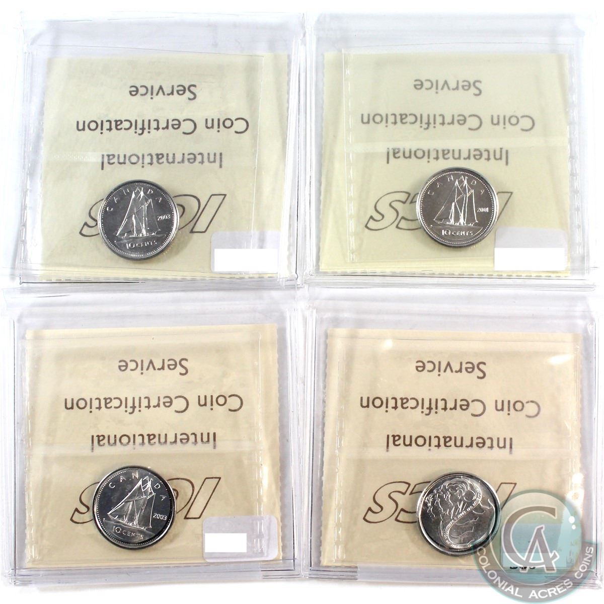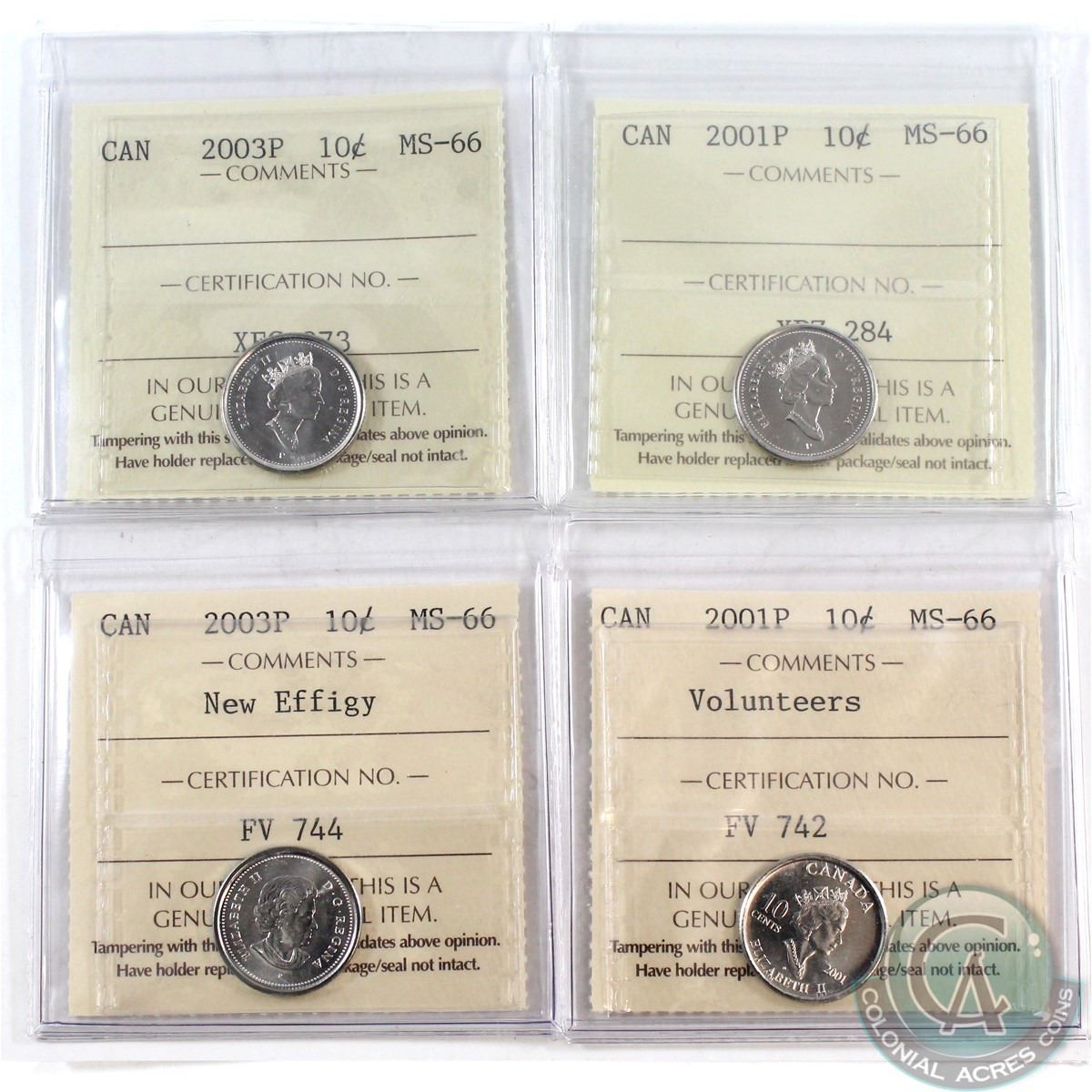 10-cent 2001P, 2001P Volunteers, 2003P & 2003P New Effigy ICCS Certified MS-66. 4pcs