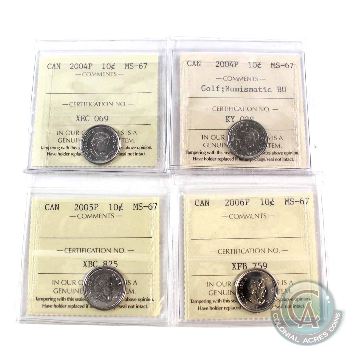 10-cent 2004P, 2004P Golf Numismatic BU, 2005P & 2006P ICCS Certified MS-67. 4pcs