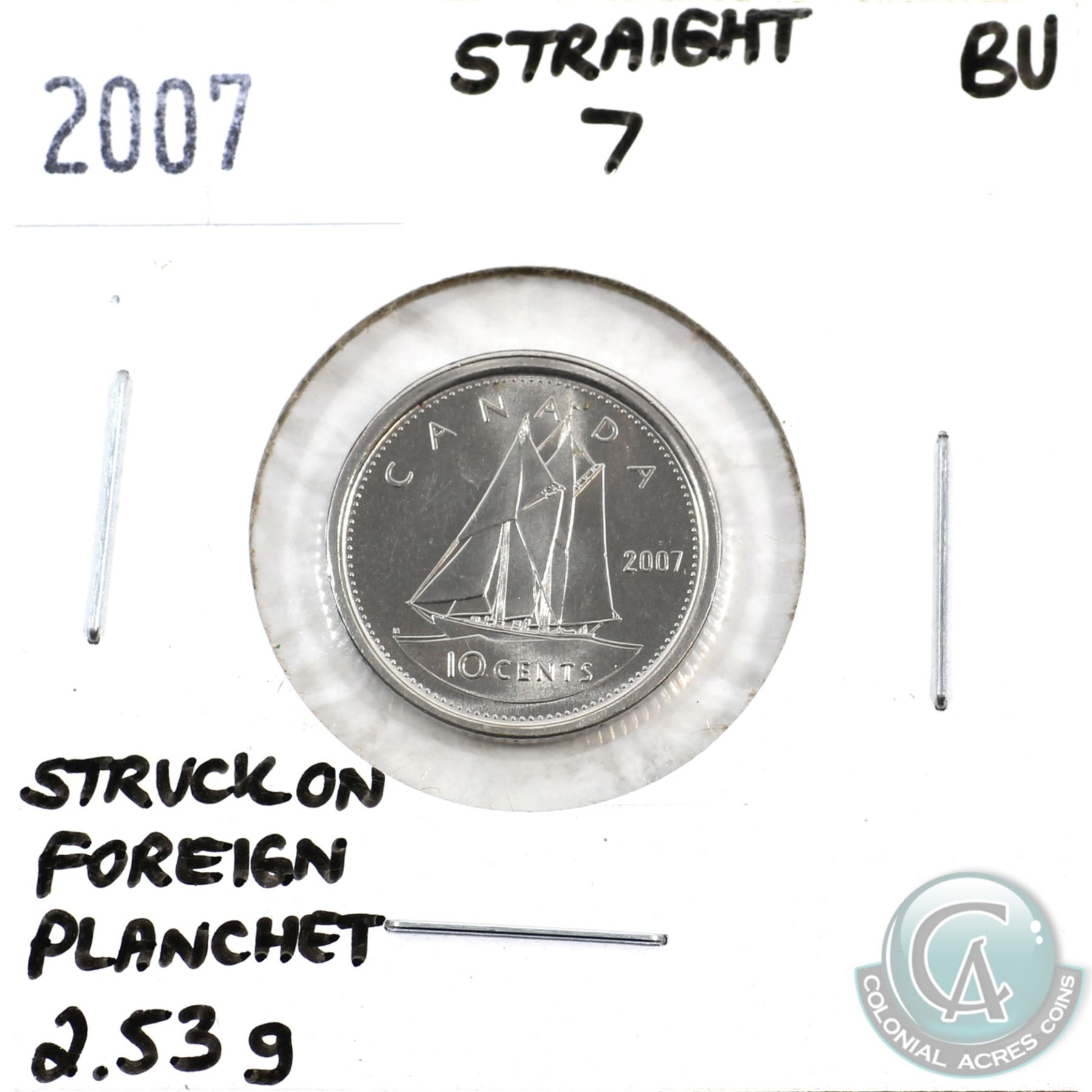10-cent 2007 Canada Straight 7 Variety Struck on a Foreign Planchet 2.53g B.U.