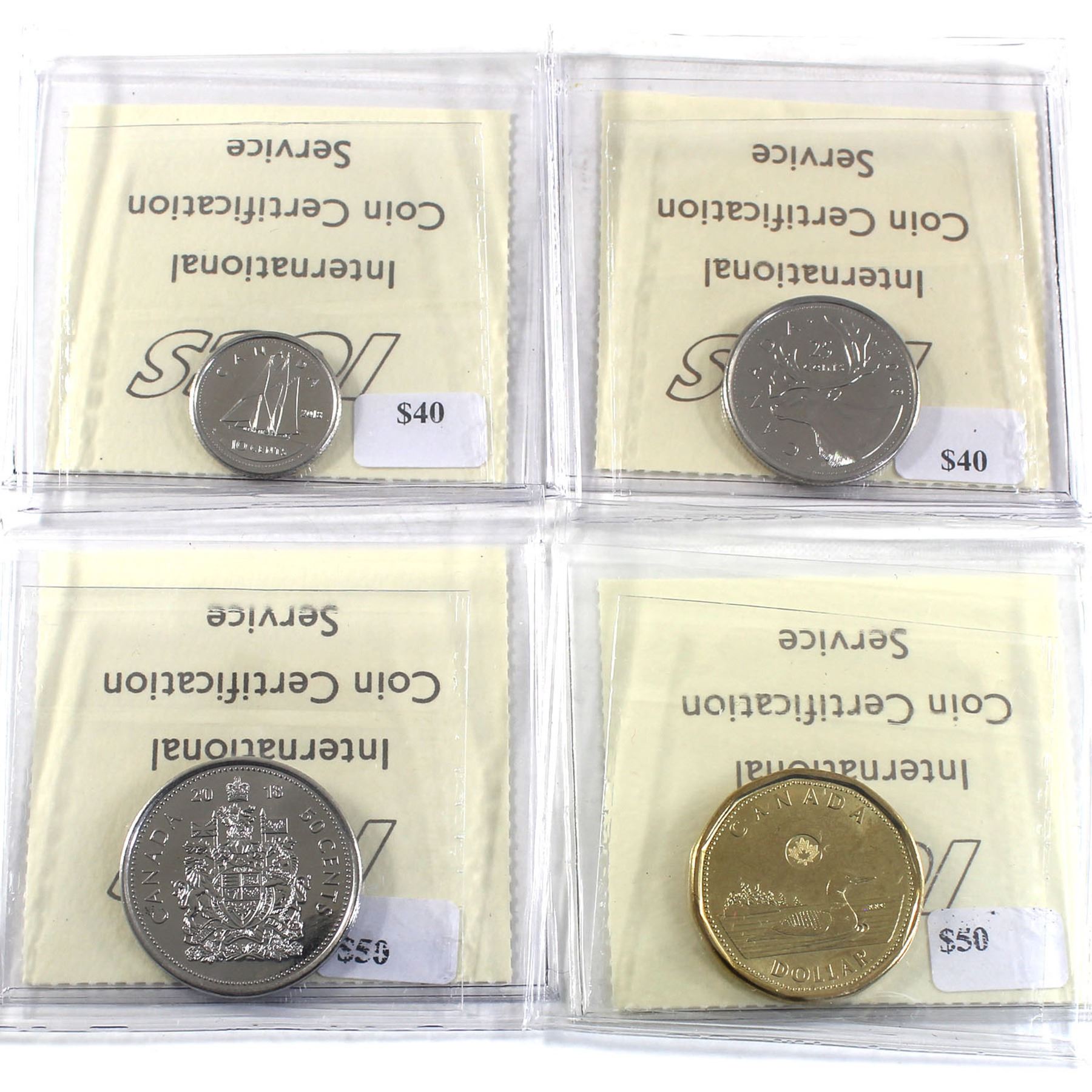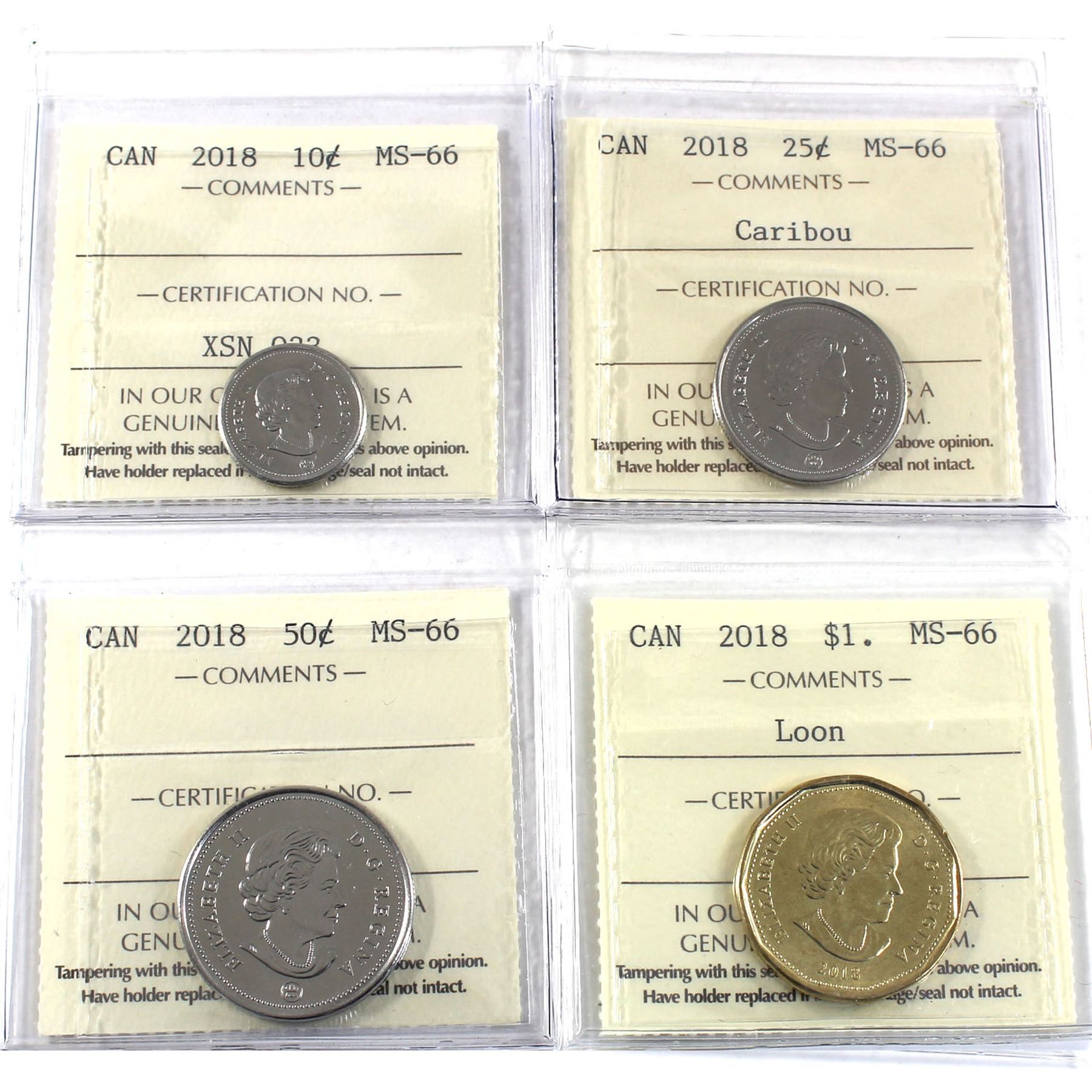 10-cent, 25-cent, 50-cent & Loon $1 2018 ICCS Certified MS-66. 4pcs