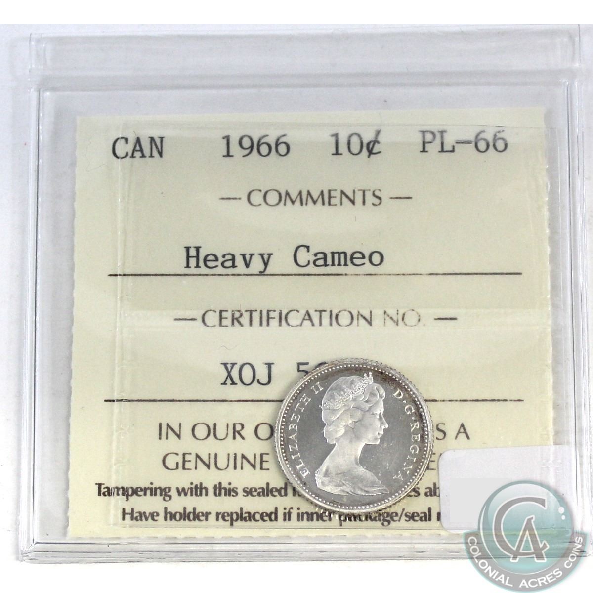 10-cent Canada 1966 ICCS Certified PL-66 Heavy Cameo