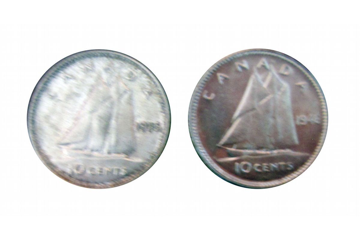 10 cents 1945 & 1946 MS-60. Lot of 2 coins.