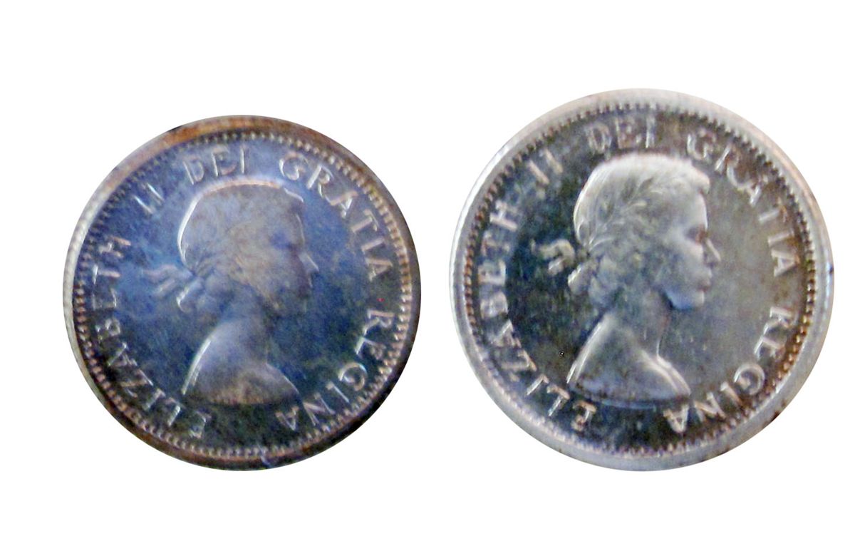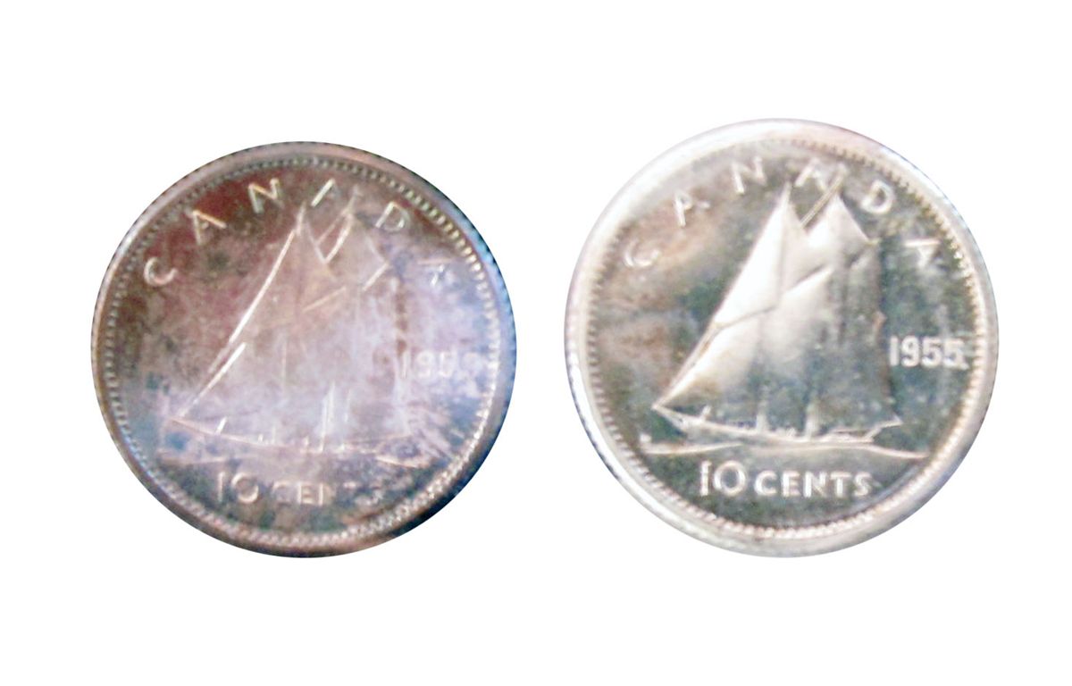 10 cents 1955 in ICCS PL-65 & 1956 in ICCS PL-65; Heavy Cameo. Lot of 2 coins.