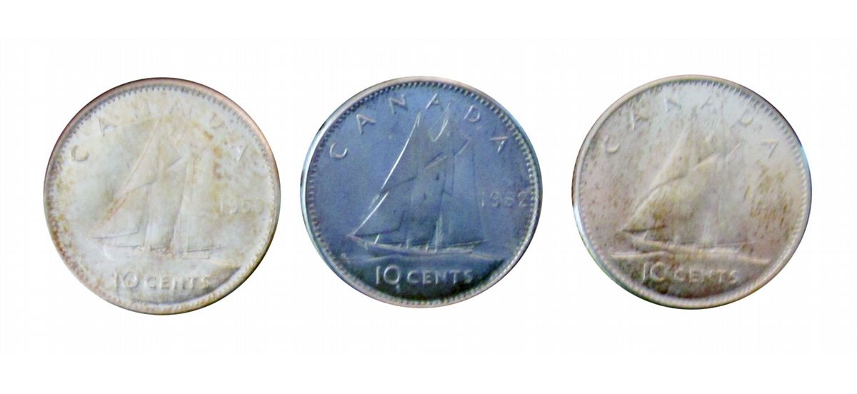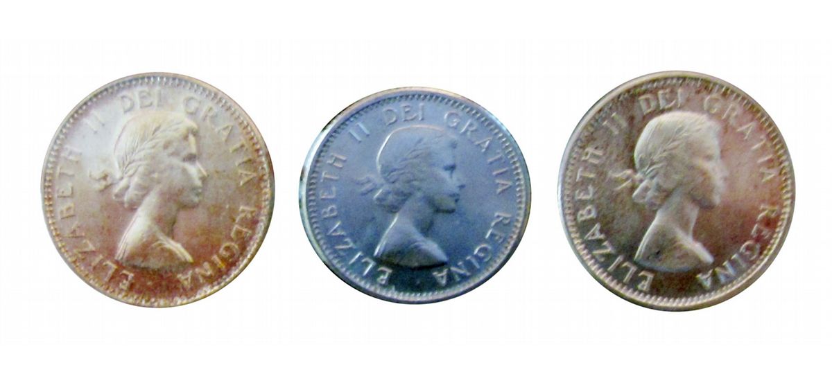10 cents 1959 in MS-63, 1961 in MS-64 and 1962 in MS-65, Lot of 3 coins.
