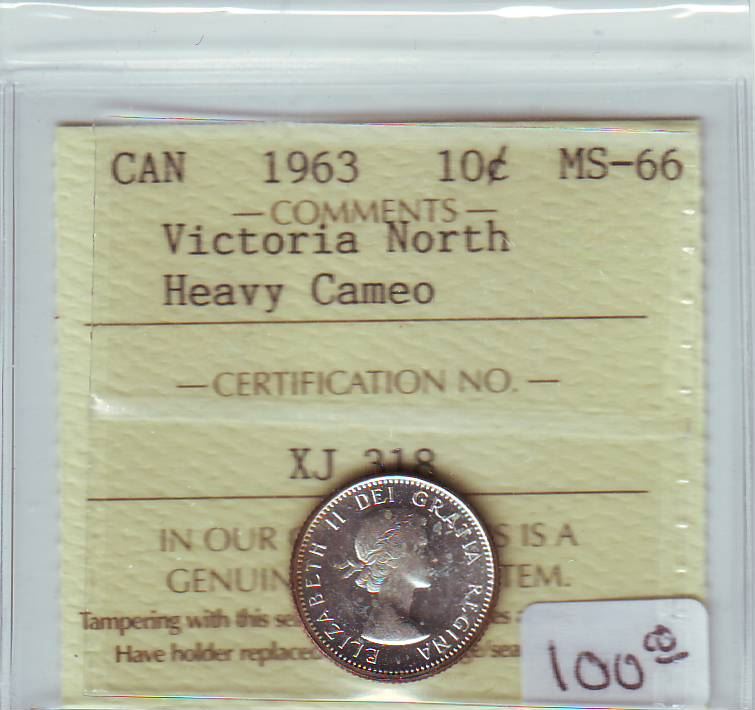 10 cents 1963, ICCS MS-66; Victoria North, Heavy Cameo.
