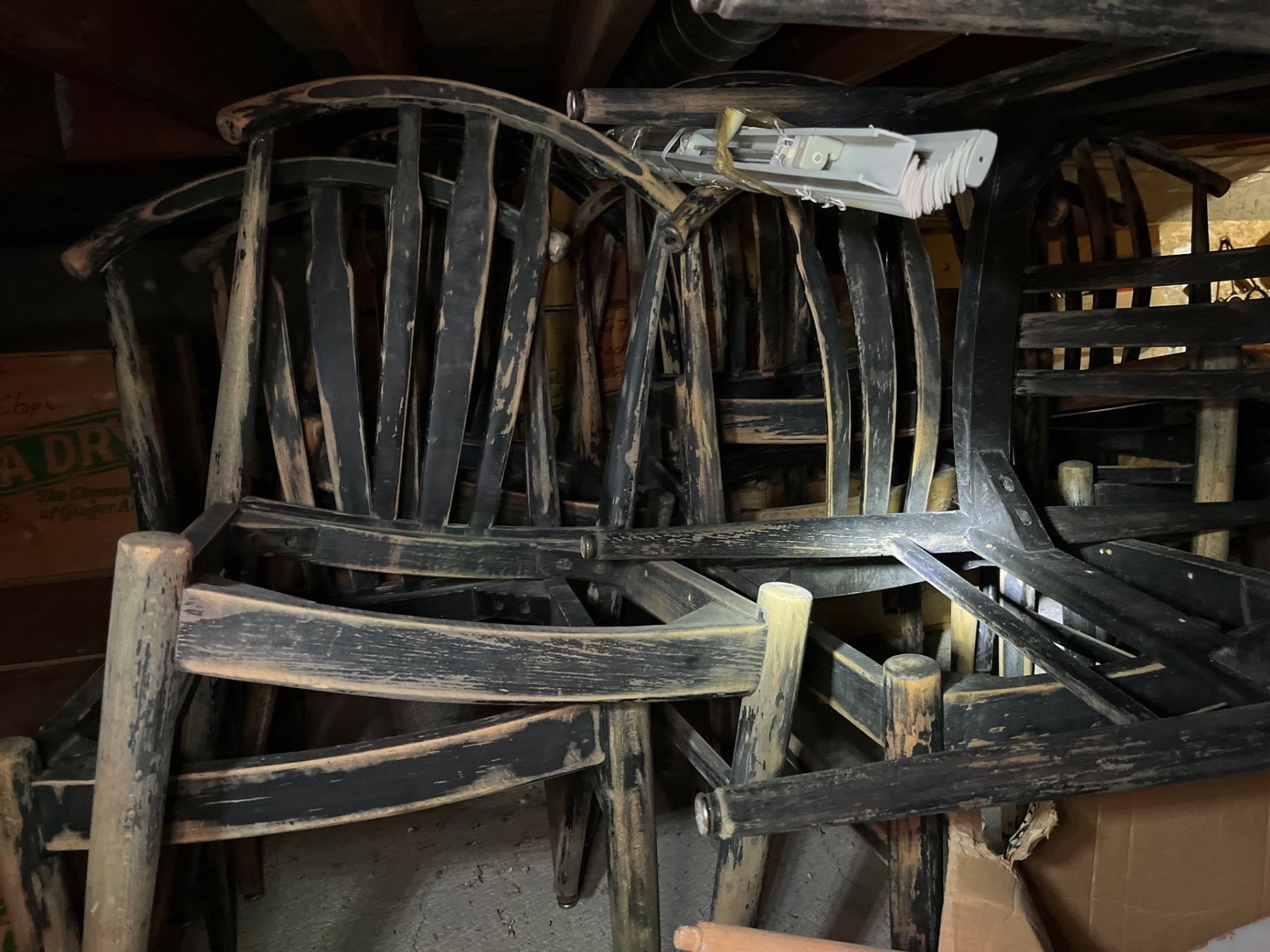 10 chairs in total extra legs and parts included From from Jasper Park Lodge hotel.