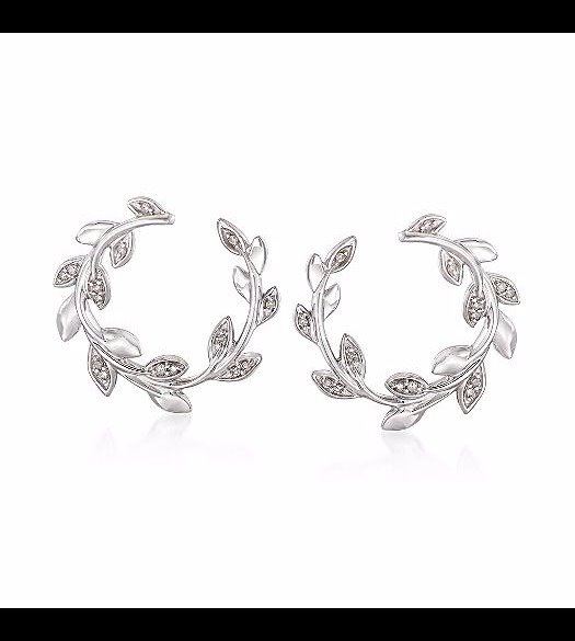 Regal wreaths of laurel leaves provide an enchanting motif for these earrings. The sterling silver hoops cast a subtle shimmer with .10 ct. t.w. diamonds. Hanging length is 3/4". Post/clutch, diamond leaf hoop earrings.