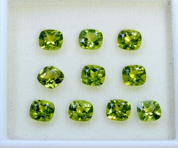 10 ct & up Peridot Cushion Cut ctw 10.76 10Pcs