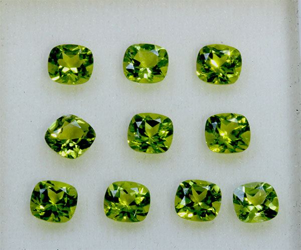 10 ct & up Peridot Cushion Cut ctw 10.76 10Pcs