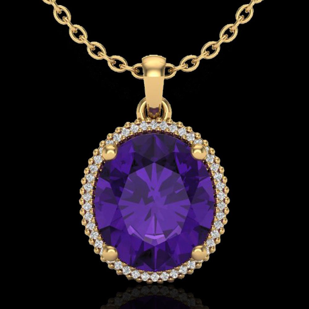 REF-78K2Y - SKU: 20602 ---- 10 ctw Amethyst & Micro Pave VS/SI Diamond Necklace 18k Yellow Gold
